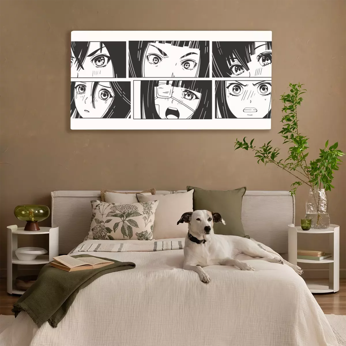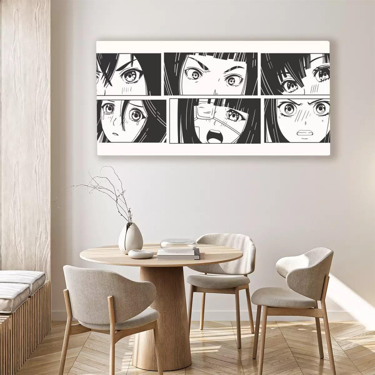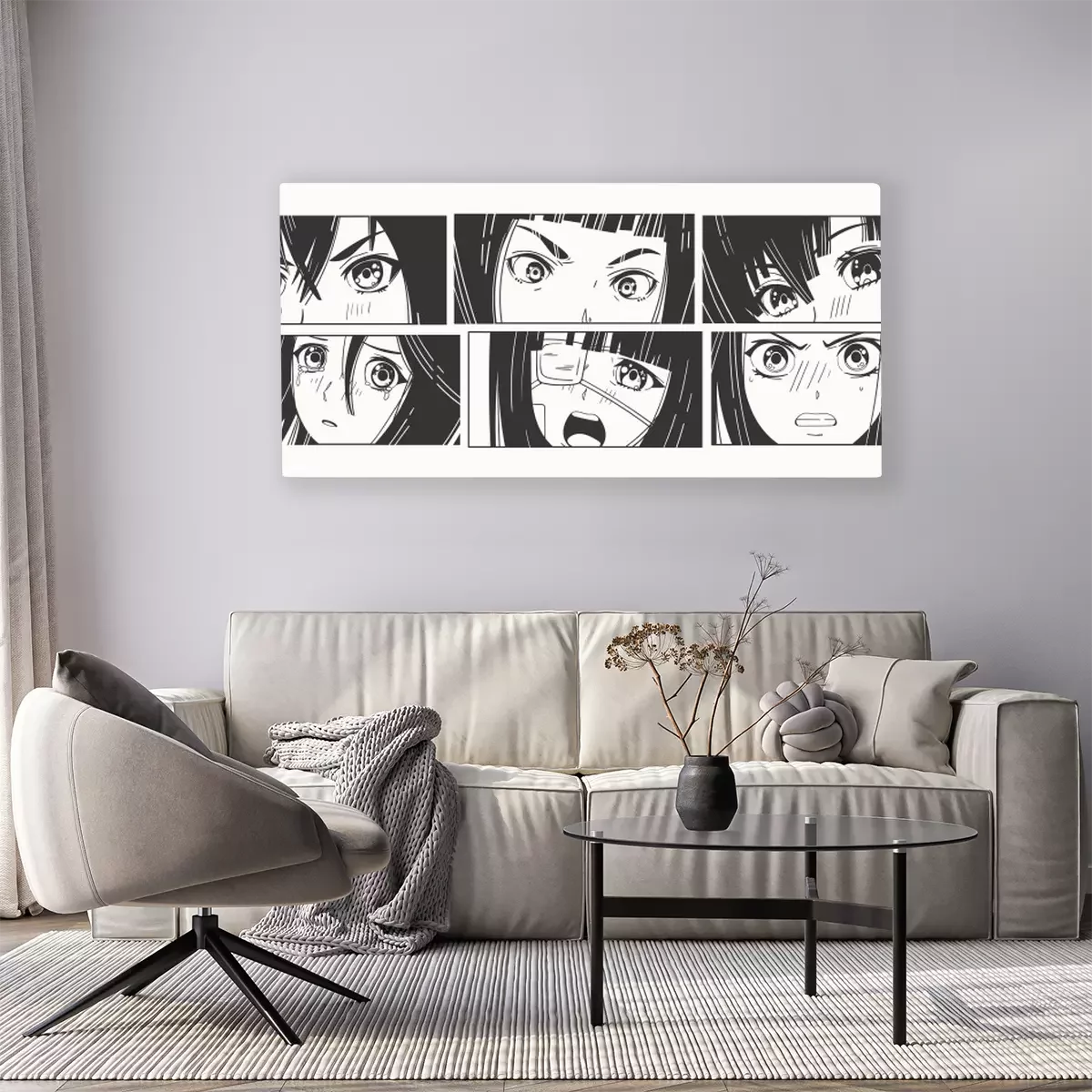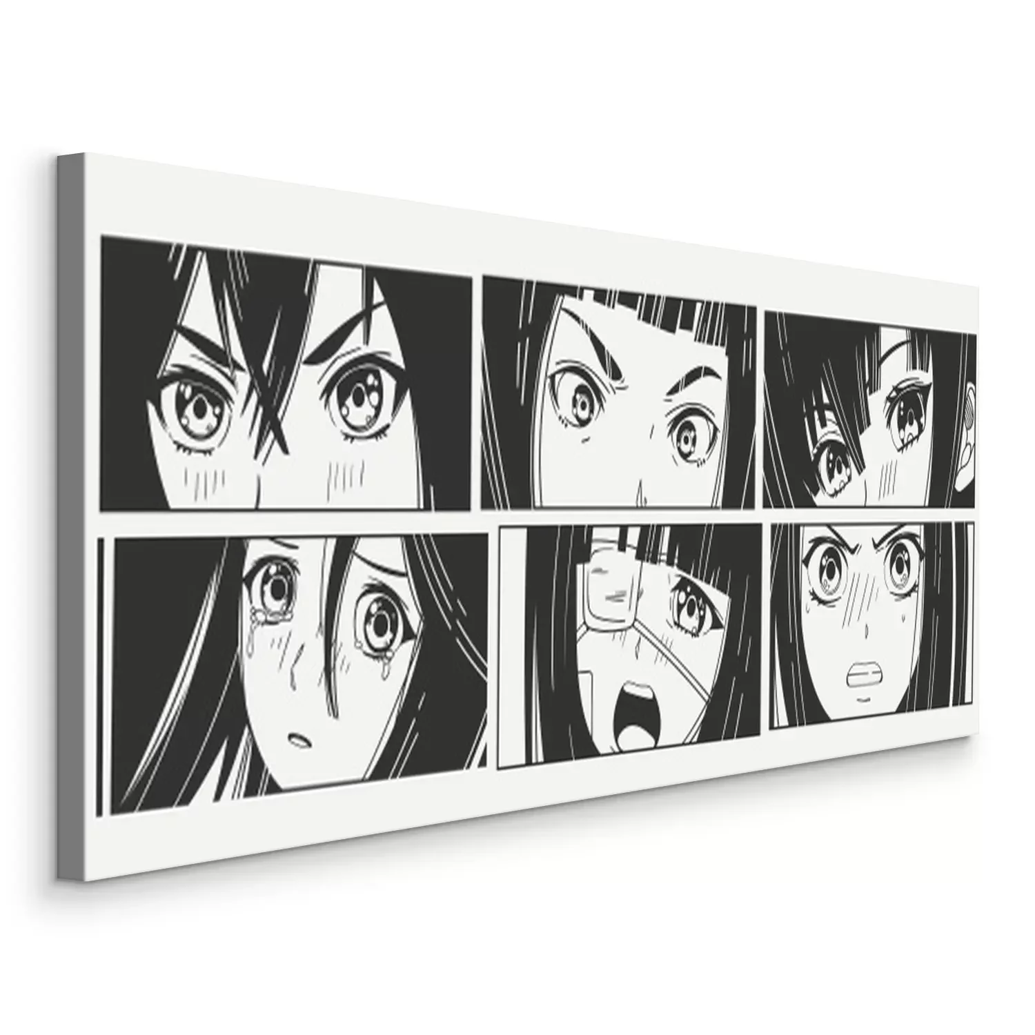 Canvas Six pairs of Asian Eyes look. Manga style. Japanese cartoon Comic concept. Anime characters. Hand drawn trendy Vector illustration. Pre-made prints. Every illustration is isolated
