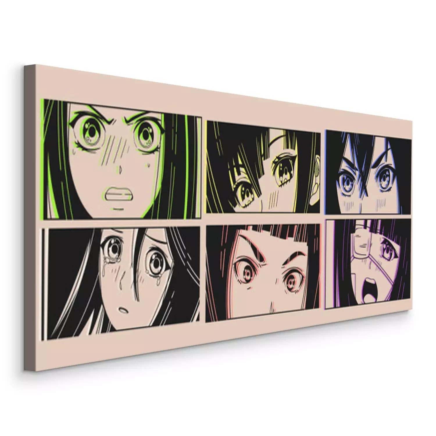 Canvas Six pairs of Asian Eyes look. Neon effect. Manga style. Japanese cartoon Comic concept. Anime characters. Hand drawn trendy Vector illustration. Pre-made prints. Every illustration is isolated
