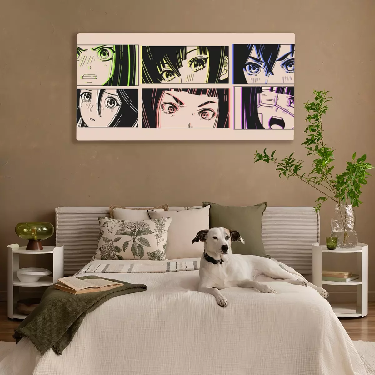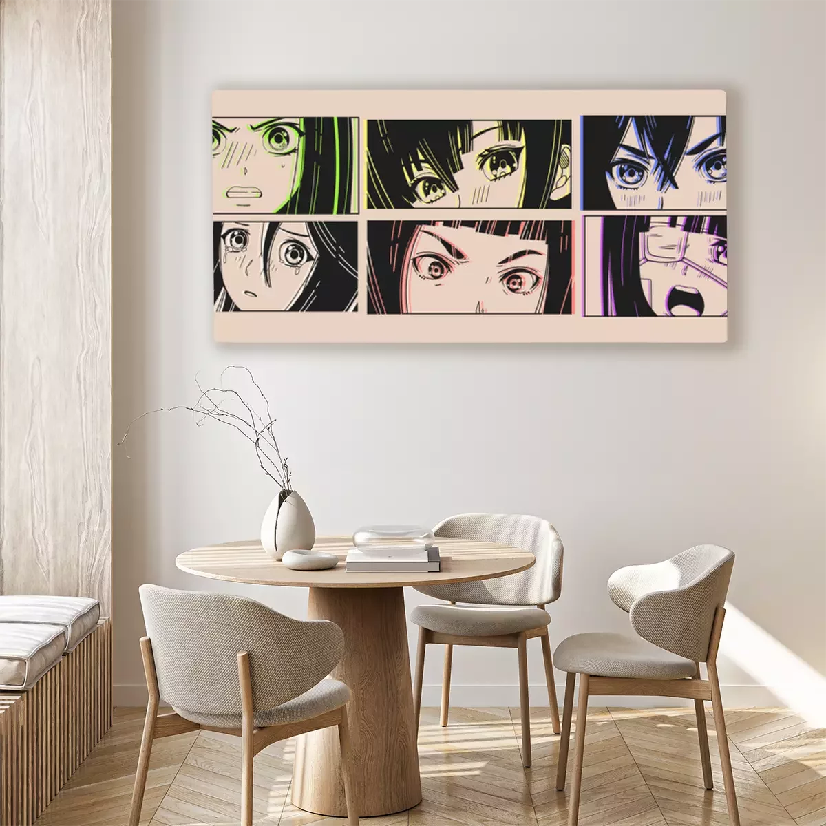 Canvas: Six pairs of Asian Eyes look. Neon effect. Manga style. Japanese cartoon Comic concept. Anime characters. Hand drawn trendy Vector illustration. Pre-made prints. Every illustration is isolated