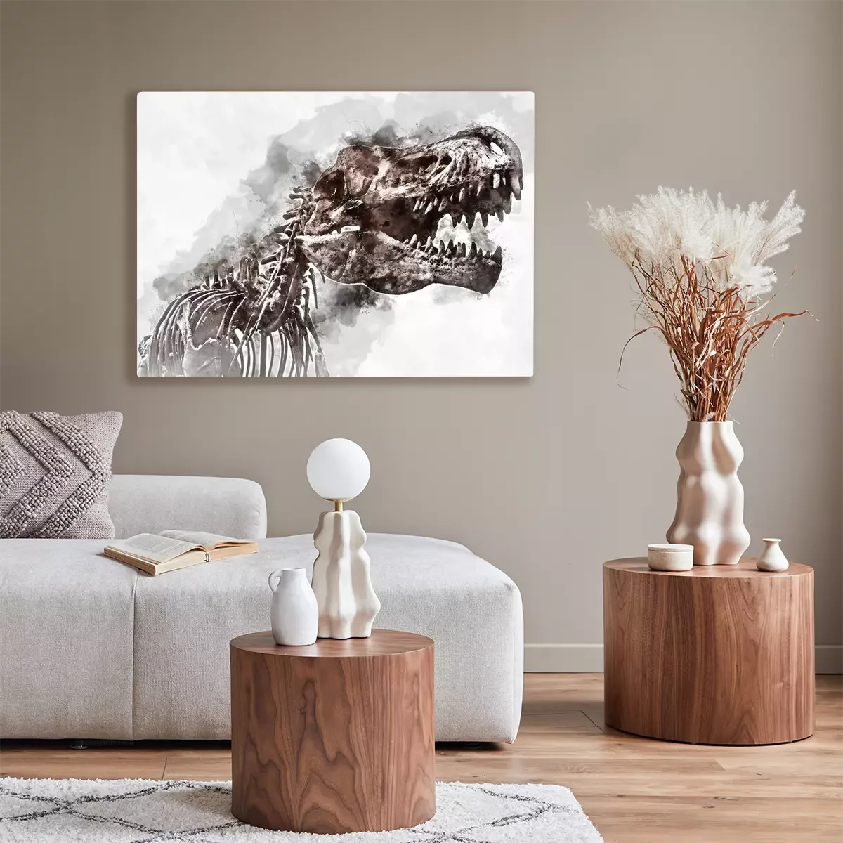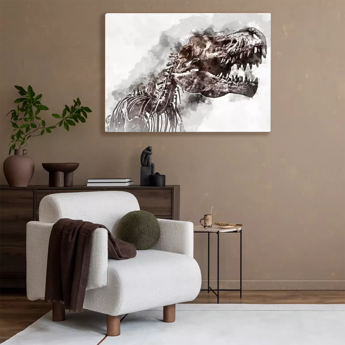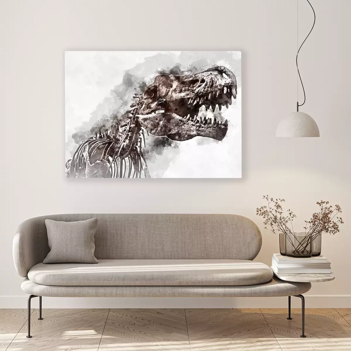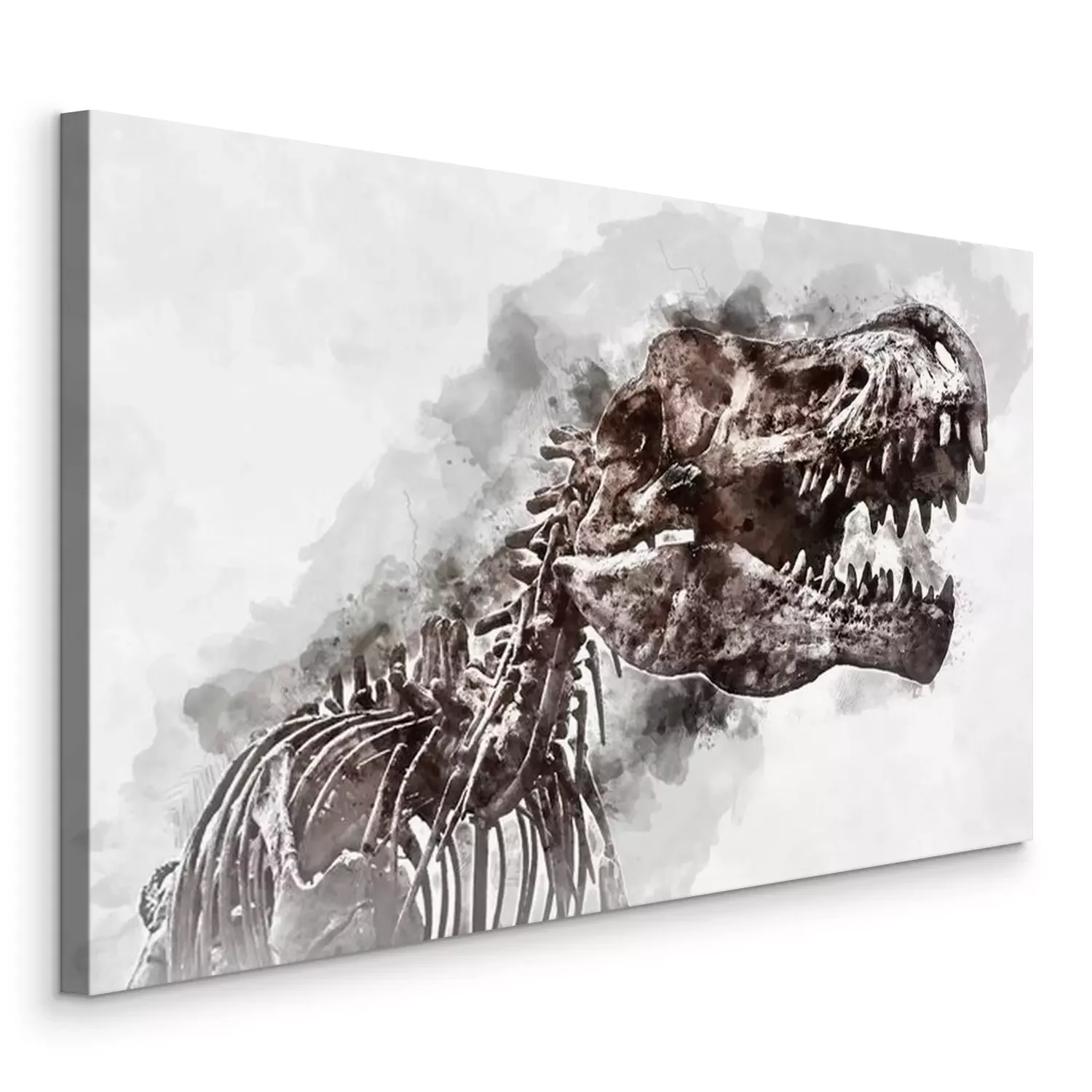 Canvas: Skelet van Tyrannosaurus op aquarel achtergrond