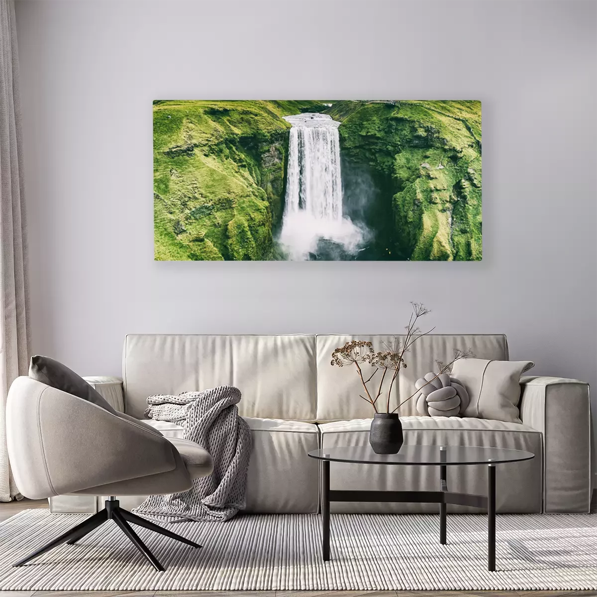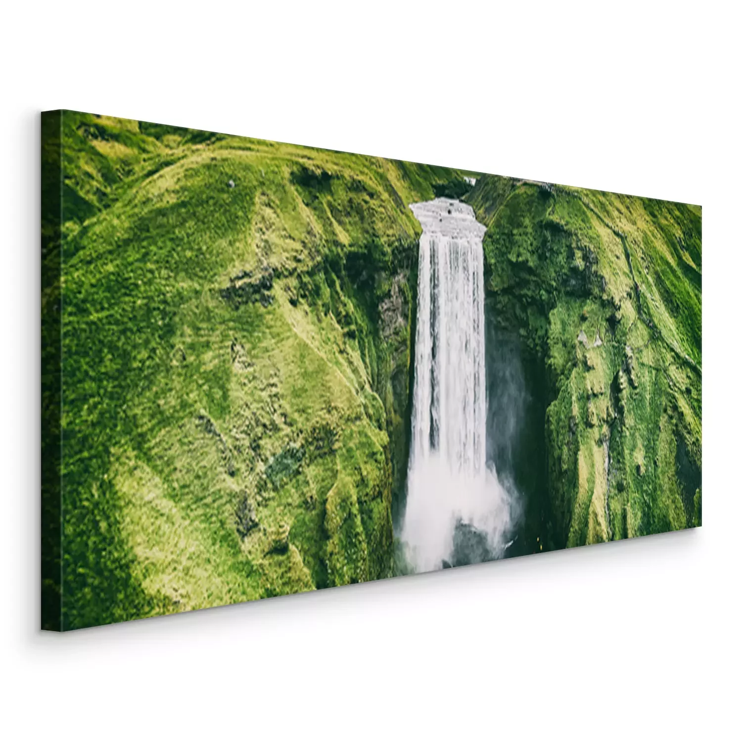 De IJslandse Skogafoss-waterval vanuit vogelperspectief