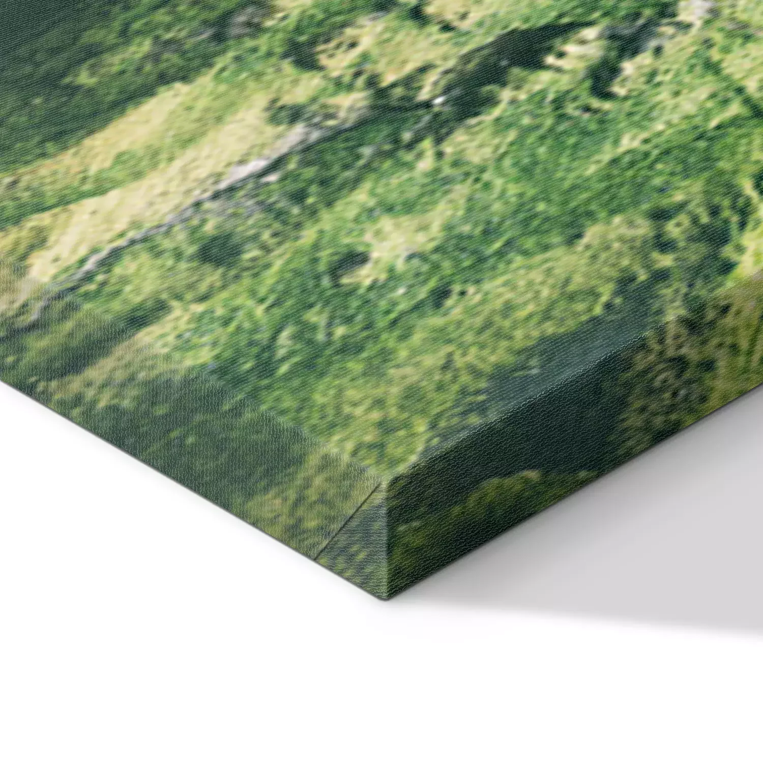 De print wordt aangebracht op hoogwaardig canvas dat op een schildersweefgetouw (spieraam) wordt gespannen. Omdat de print de zijranden bedekt, hoeft het ontwerp niet met een extra kader te worden omlijst. Wij raden ook composities aan die uit meerdere foto's bestaan en zo een coherente compositie vormen.