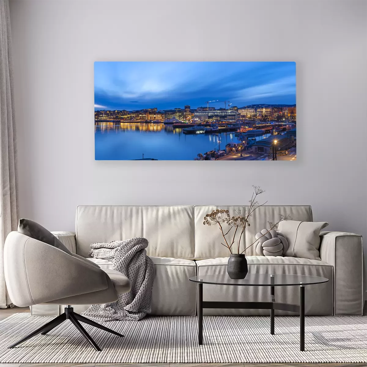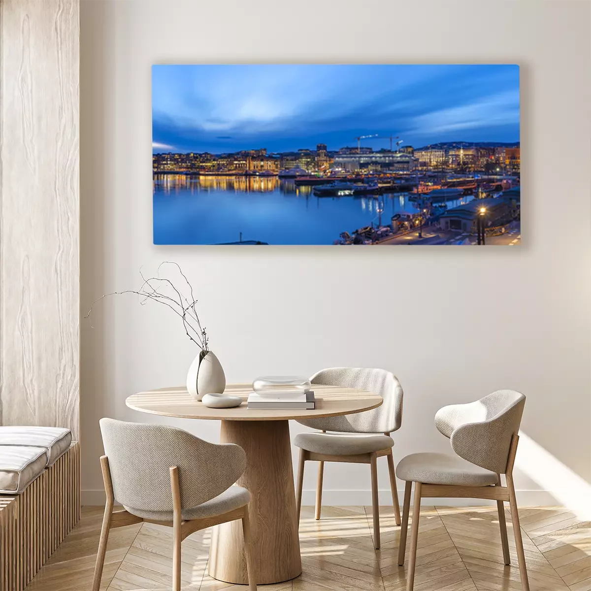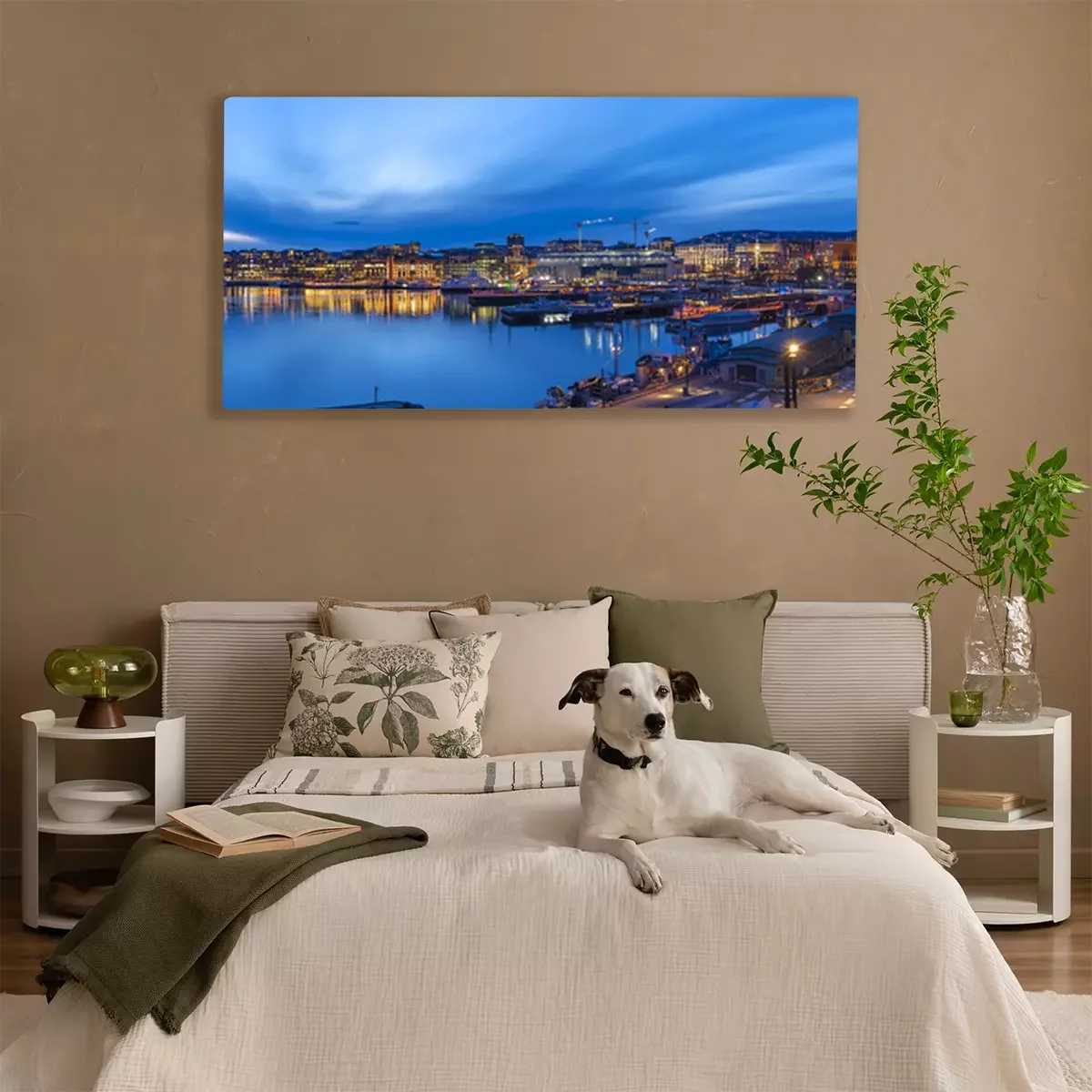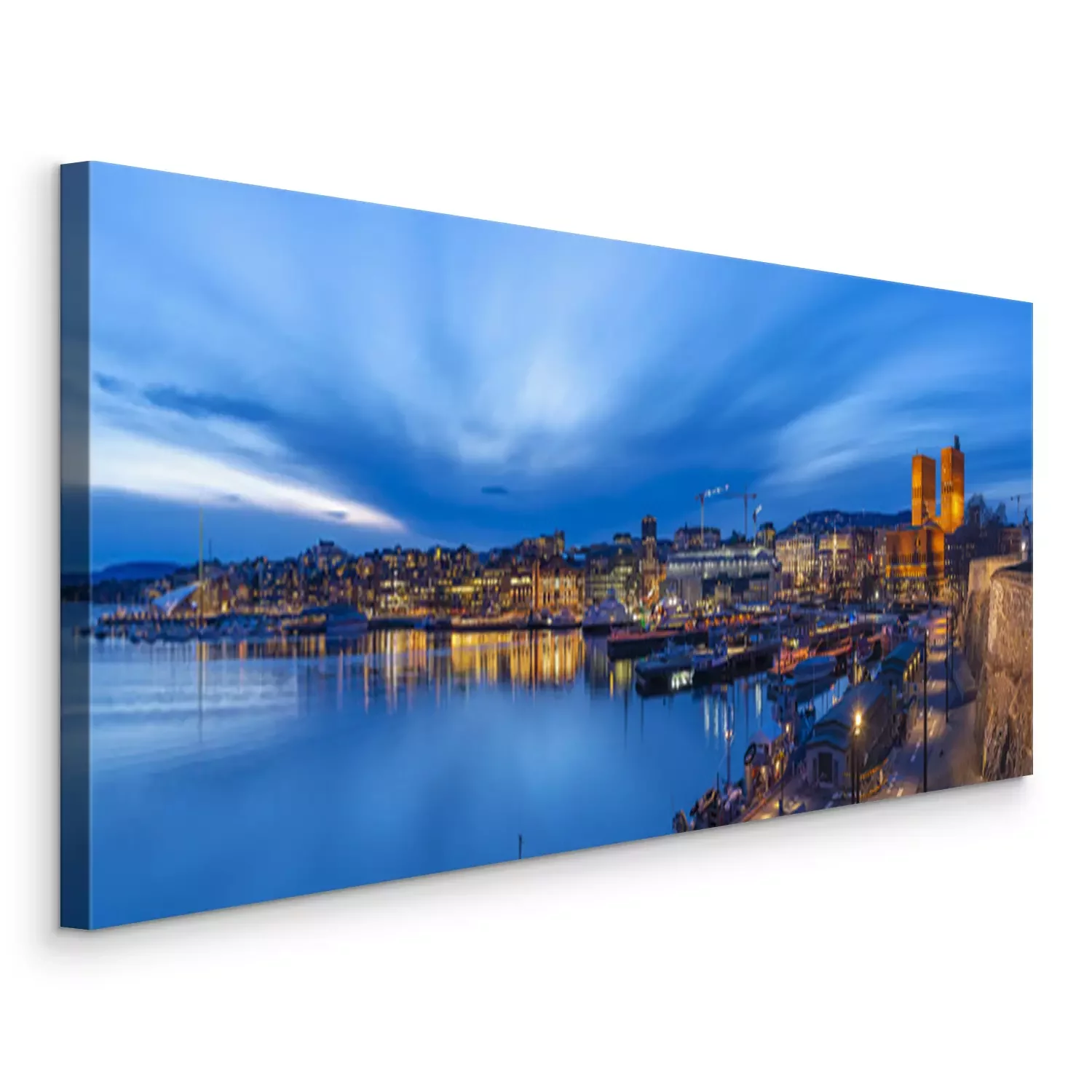Canvas Skyline van de skyline van Oslo panorama van de stad bij het stadhuis van Oslo en de haven, Oslo, Noorwegen