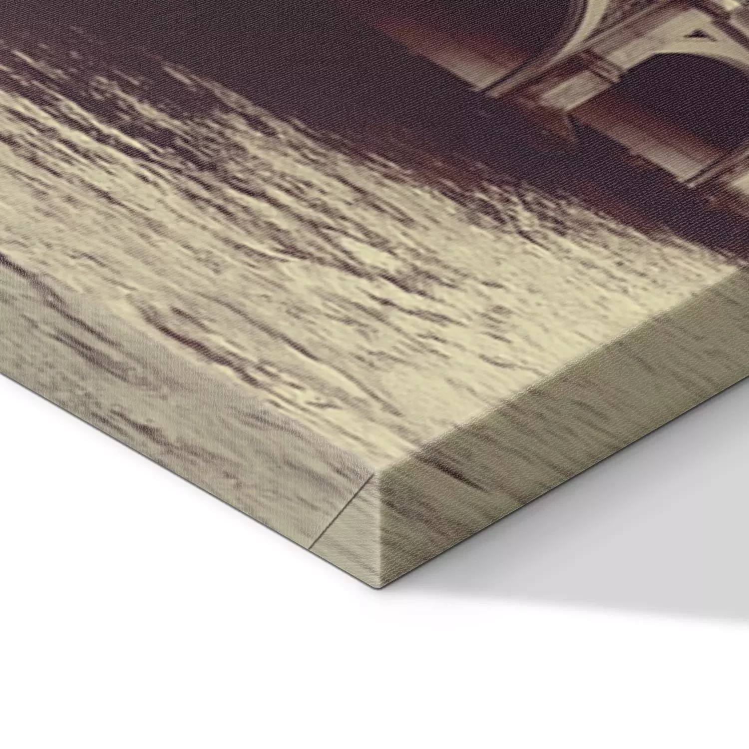 De print wordt aangebracht op hoogwaardig canvas dat op een schildersweefgetouw (spieraam) wordt gespannen. Omdat de print de zijranden bedekt, hoeft het ontwerp niet met een extra kader te worden omlijst. Wij raden ook composities aan die uit meerdere foto's bestaan en zo een coherente compositie vormen.