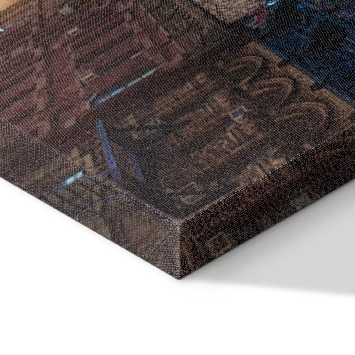 De print wordt aangebracht op hoogwaardig canvas dat op een schildersweefgetouw (spieraam) wordt gespannen. Omdat de print de zijranden bedekt, hoeft het ontwerp niet met een extra kader te worden omlijst. Wij raden ook composities aan die uit meerdere foto's bestaan en zo een coherente compositie vormen.