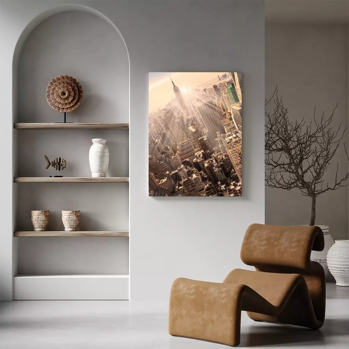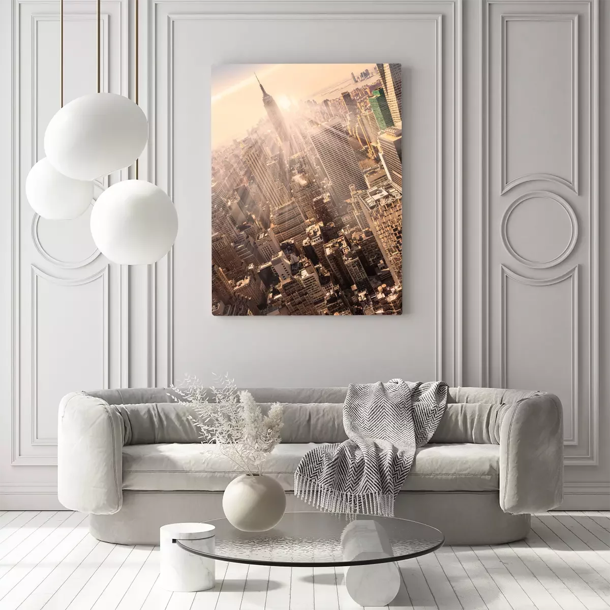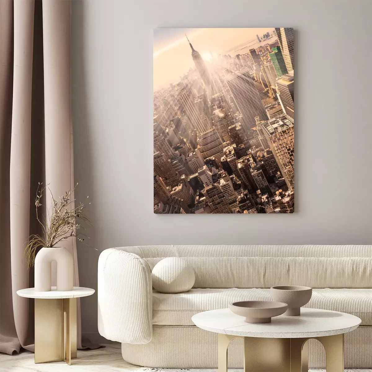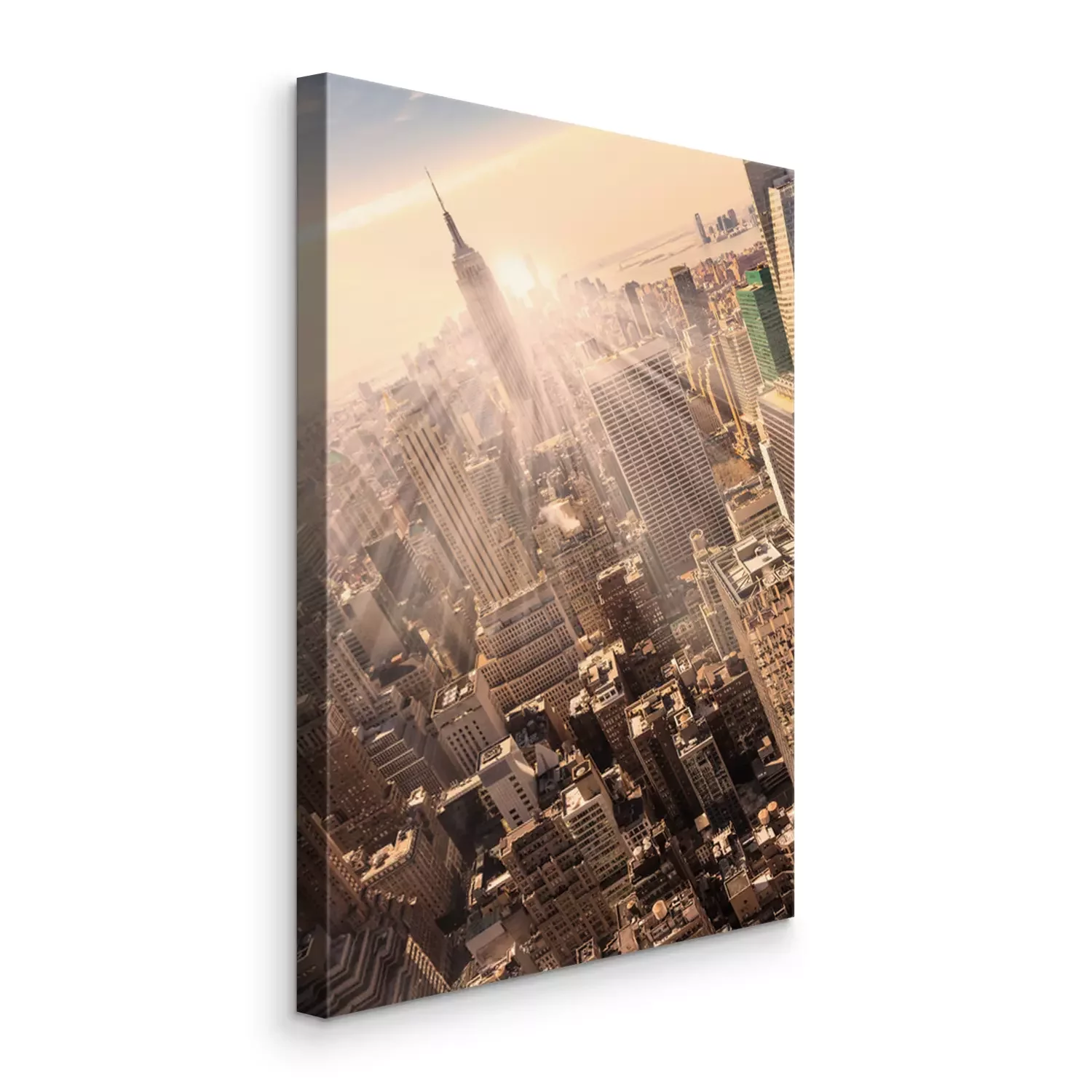 Canvas: skyline van New York City Manhattan in zonsondergang.