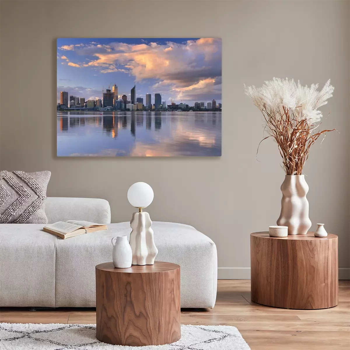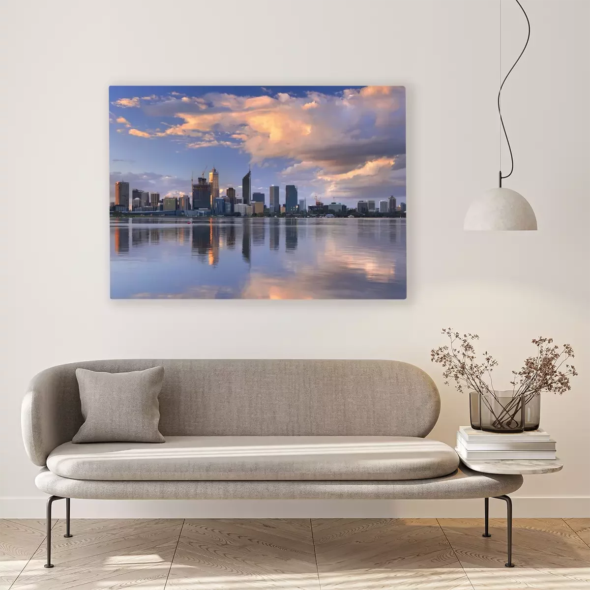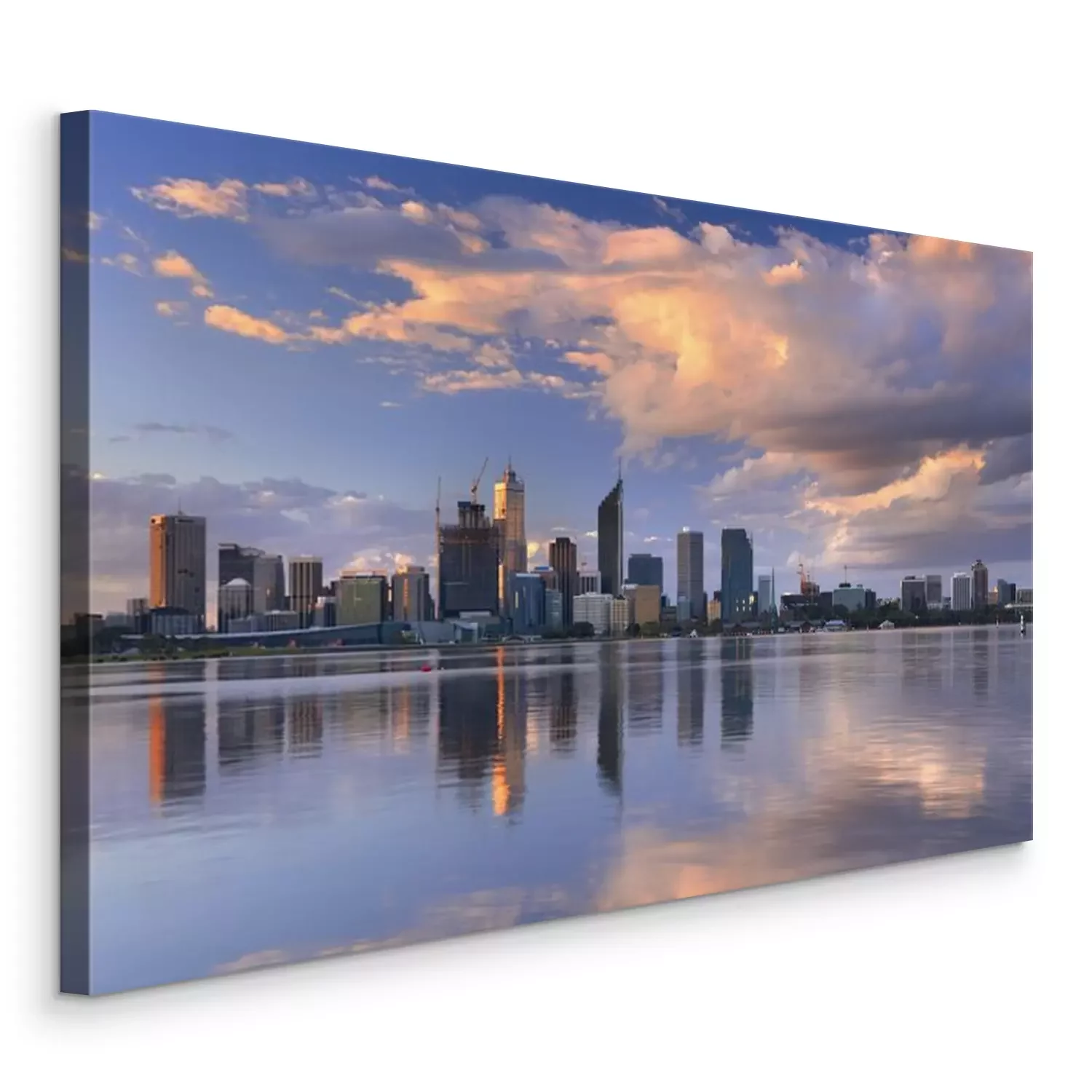 Canvas: Skyline van Perth, Australië over de Swan River bij zonsondergang