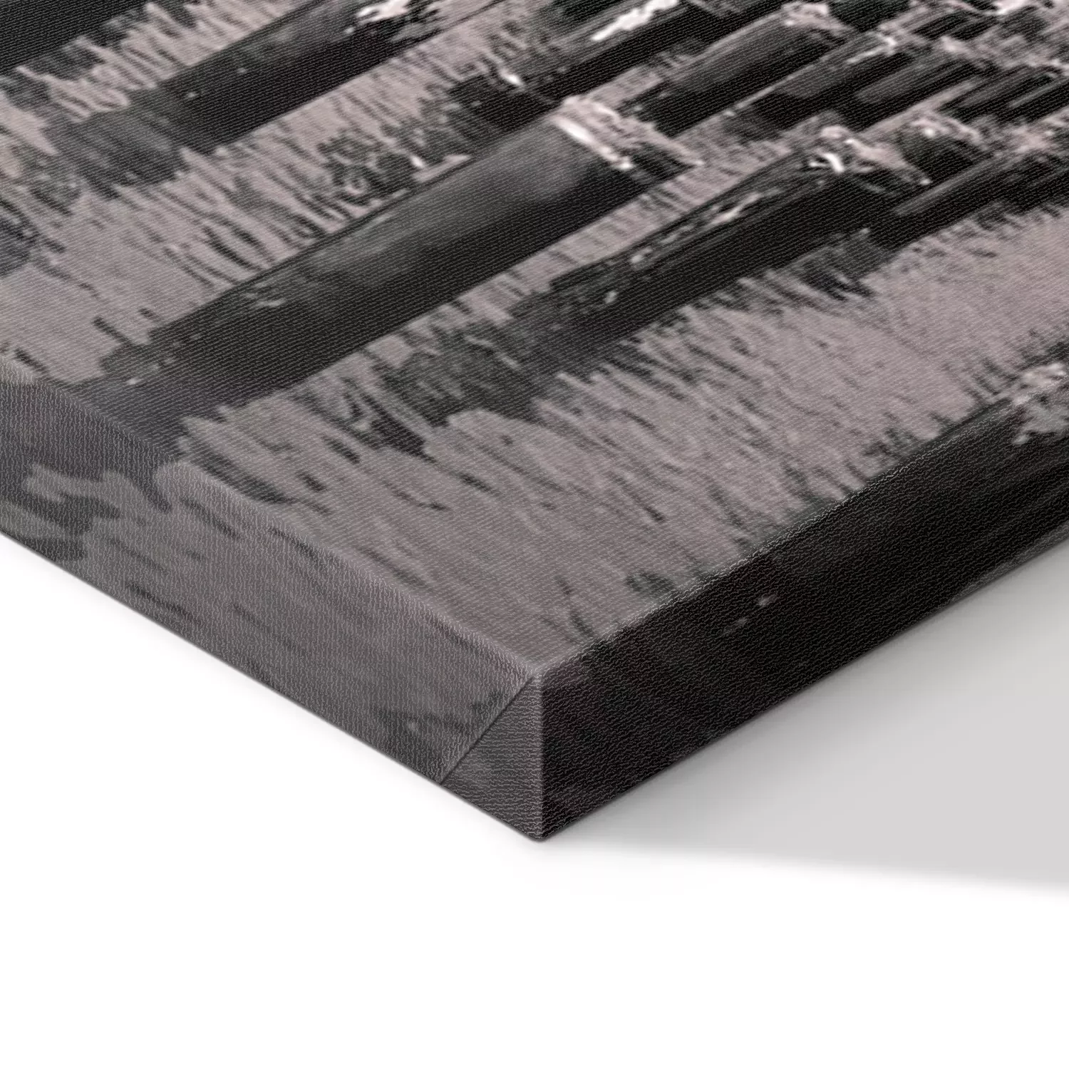De print wordt aangebracht op hoogwaardig canvas dat op een schildersweefgetouw (spieraam) wordt gespannen. Omdat de print de zijranden bedekt, hoeft het ontwerp niet met een extra kader te worden omlijst. Wij raden ook composities aan die uit meerdere foto's bestaan en zo een coherente compositie vormen.