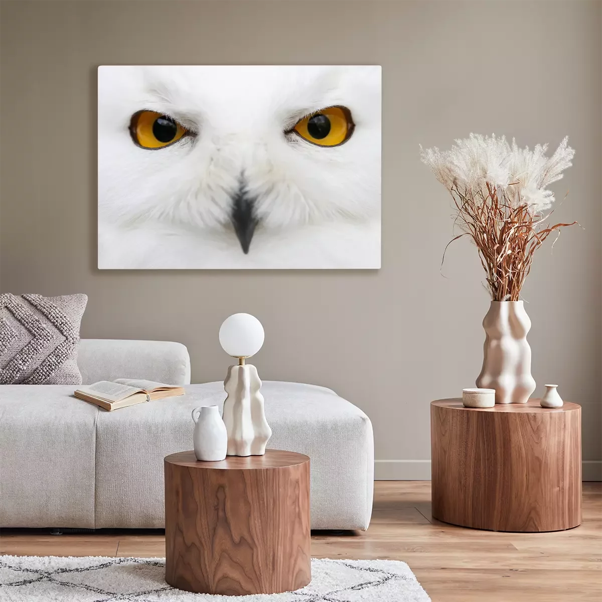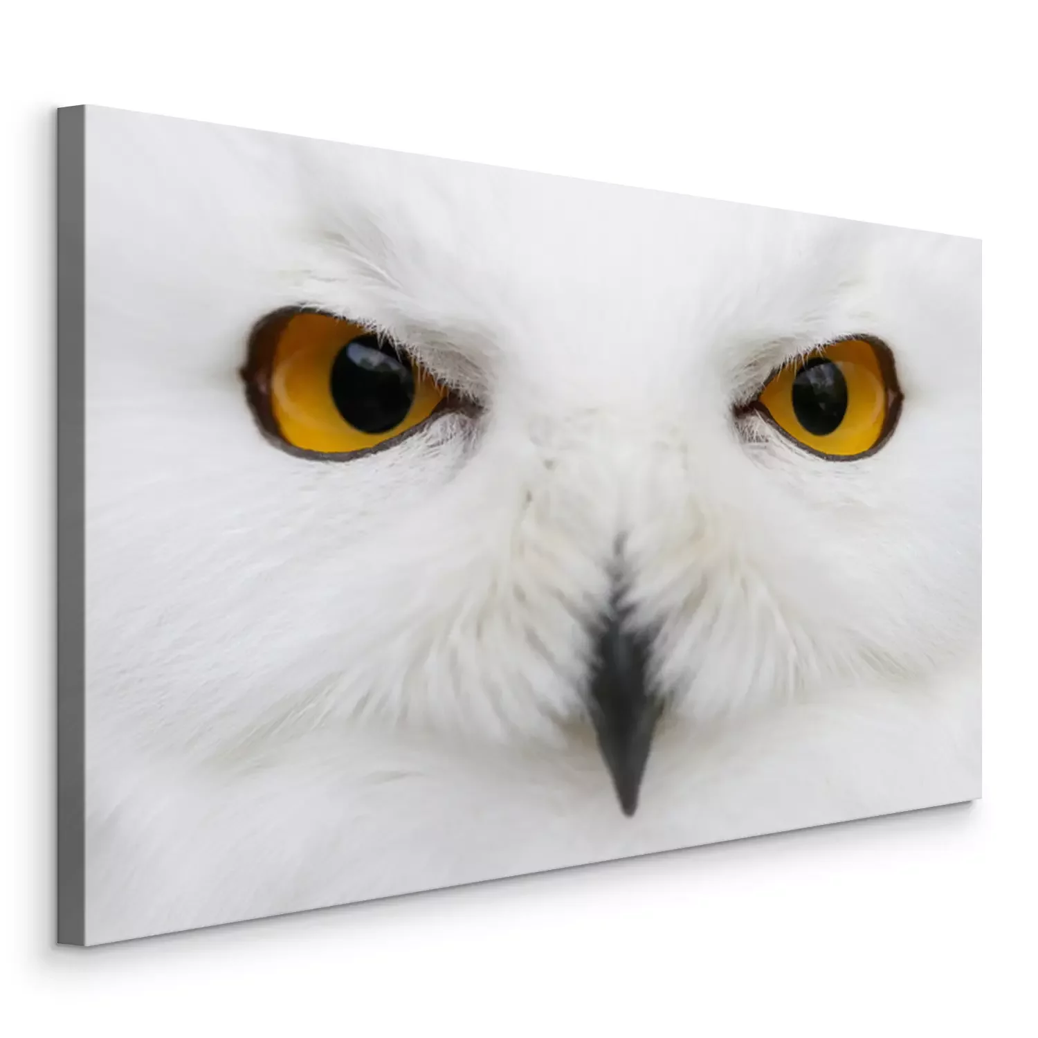 Canvas: Sluit omhoog van de oranje ogen van een uil