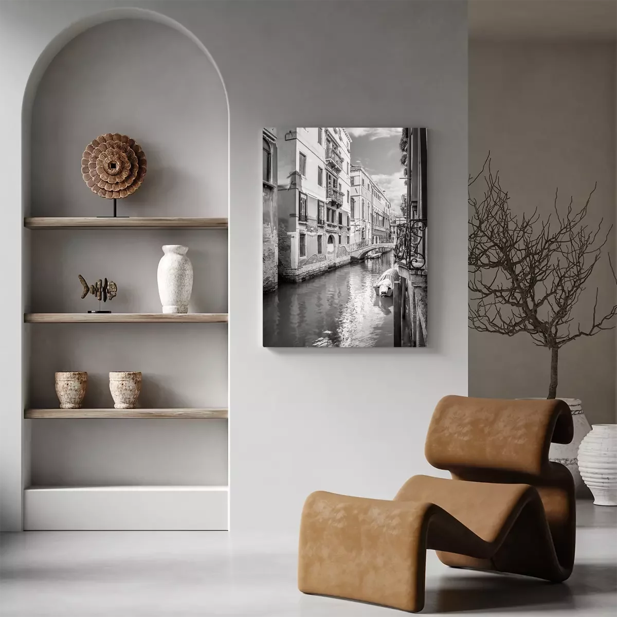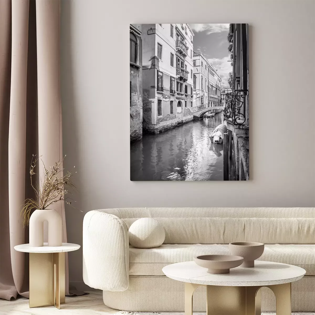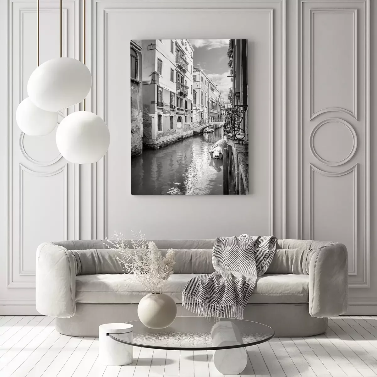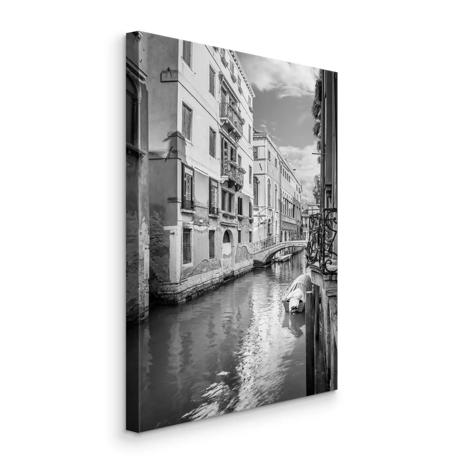 Canvas: Smal zwart-wit Venetiaans kanaal