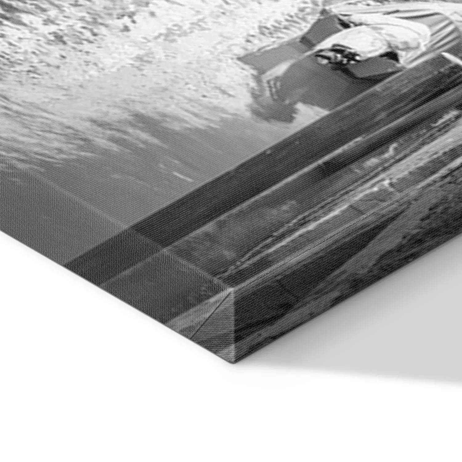 De print wordt aangebracht op hoogwaardig canvas dat op een schildersweefgetouw (spieraam) wordt gespannen. Omdat de print de zijranden bedekt, hoeft het ontwerp niet met een extra kader te worden omlijst. Wij raden ook composities aan die uit meerdere foto's bestaan en zo een coherente compositie vormen.