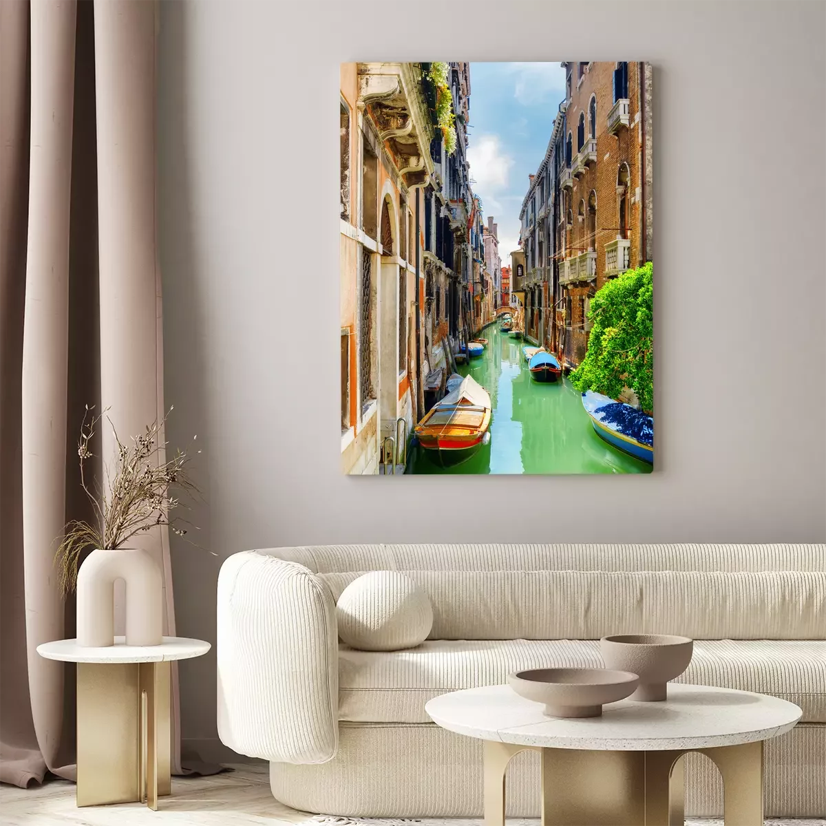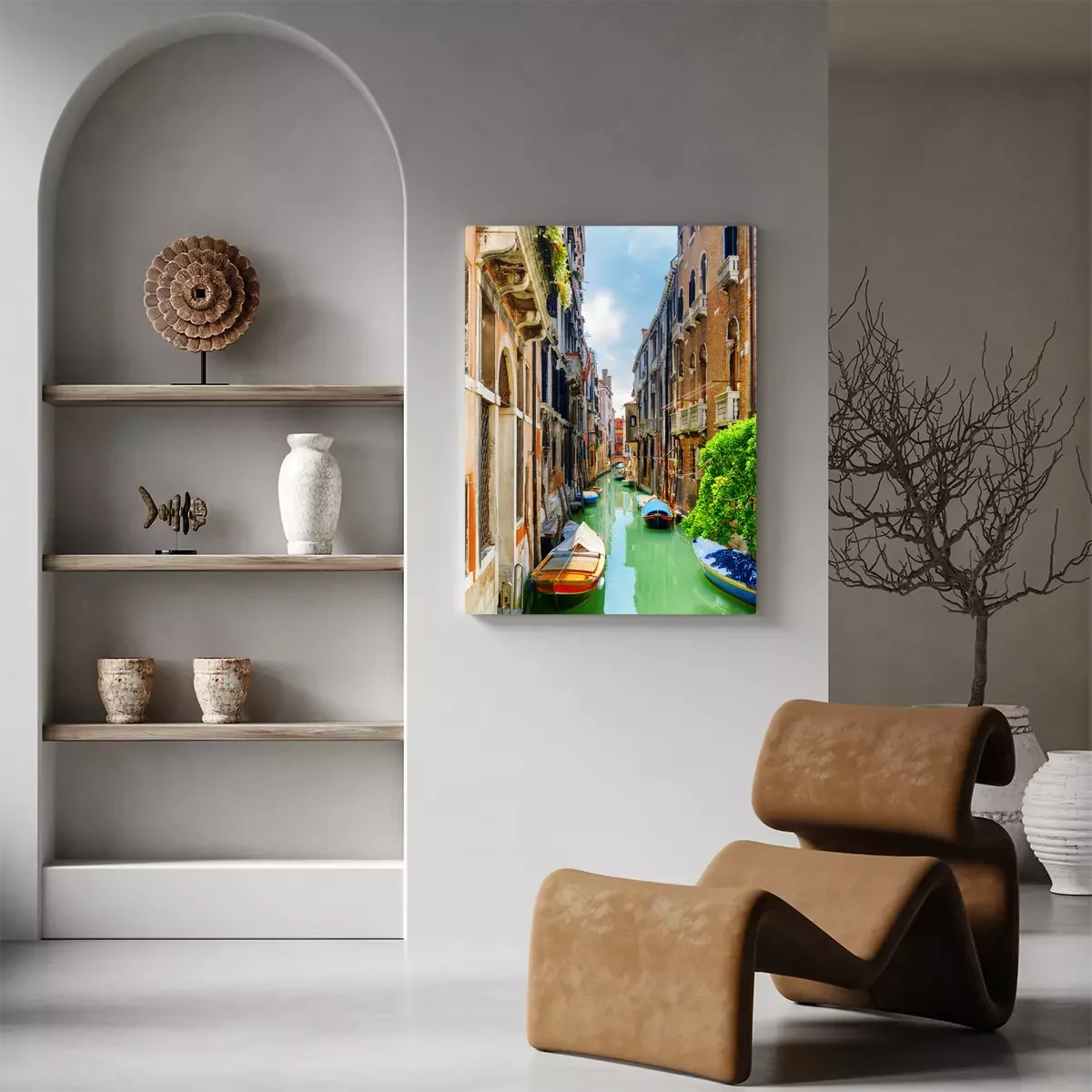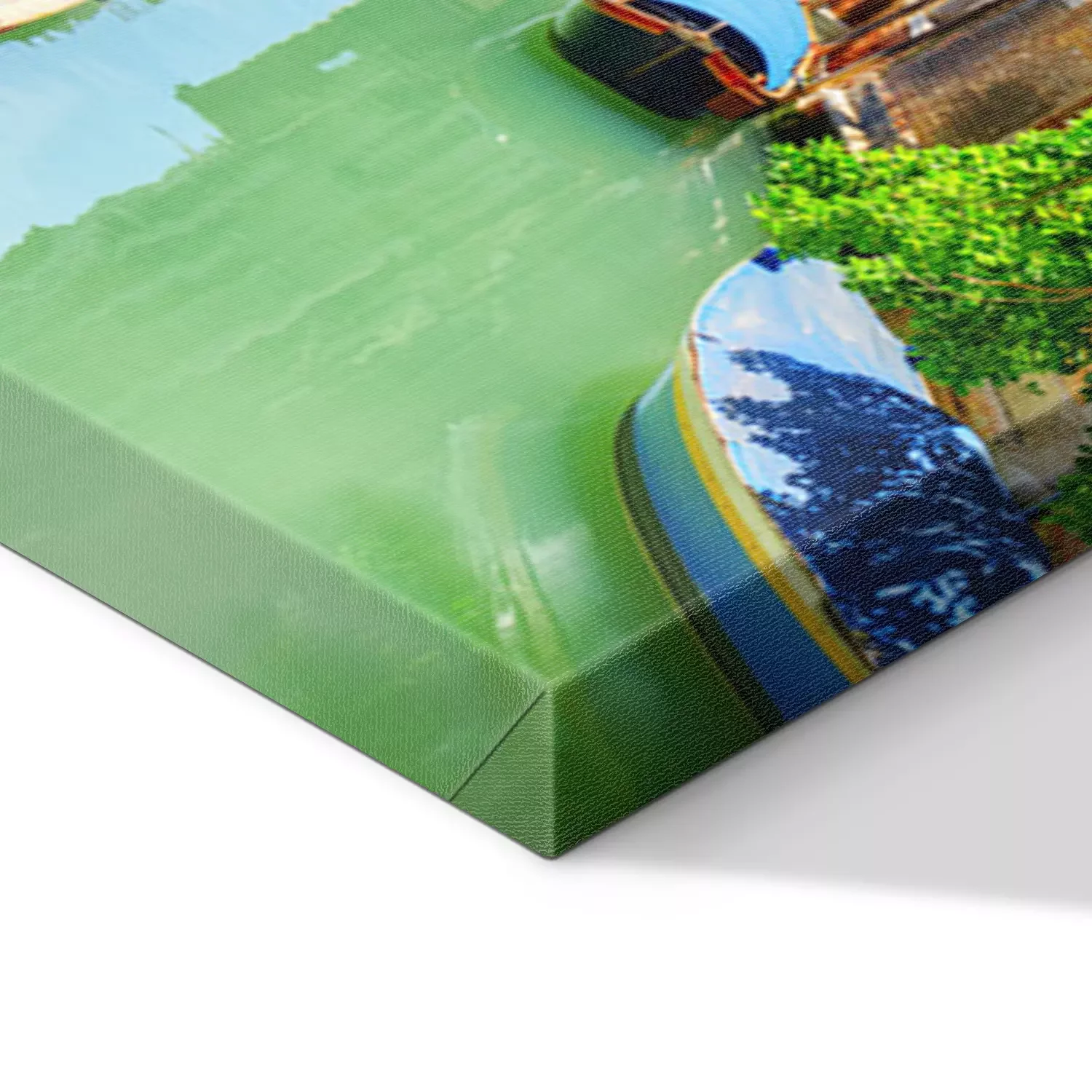De print wordt aangebracht op hoogwaardig canvas dat op een schildersweefgetouw (spieraam) wordt gespannen. Omdat de print de zijranden bedekt, hoeft het ontwerp niet met een extra kader te worden omlijst. Wij raden ook composities aan die uit meerdere foto's bestaan en zo een coherente compositie vormen.