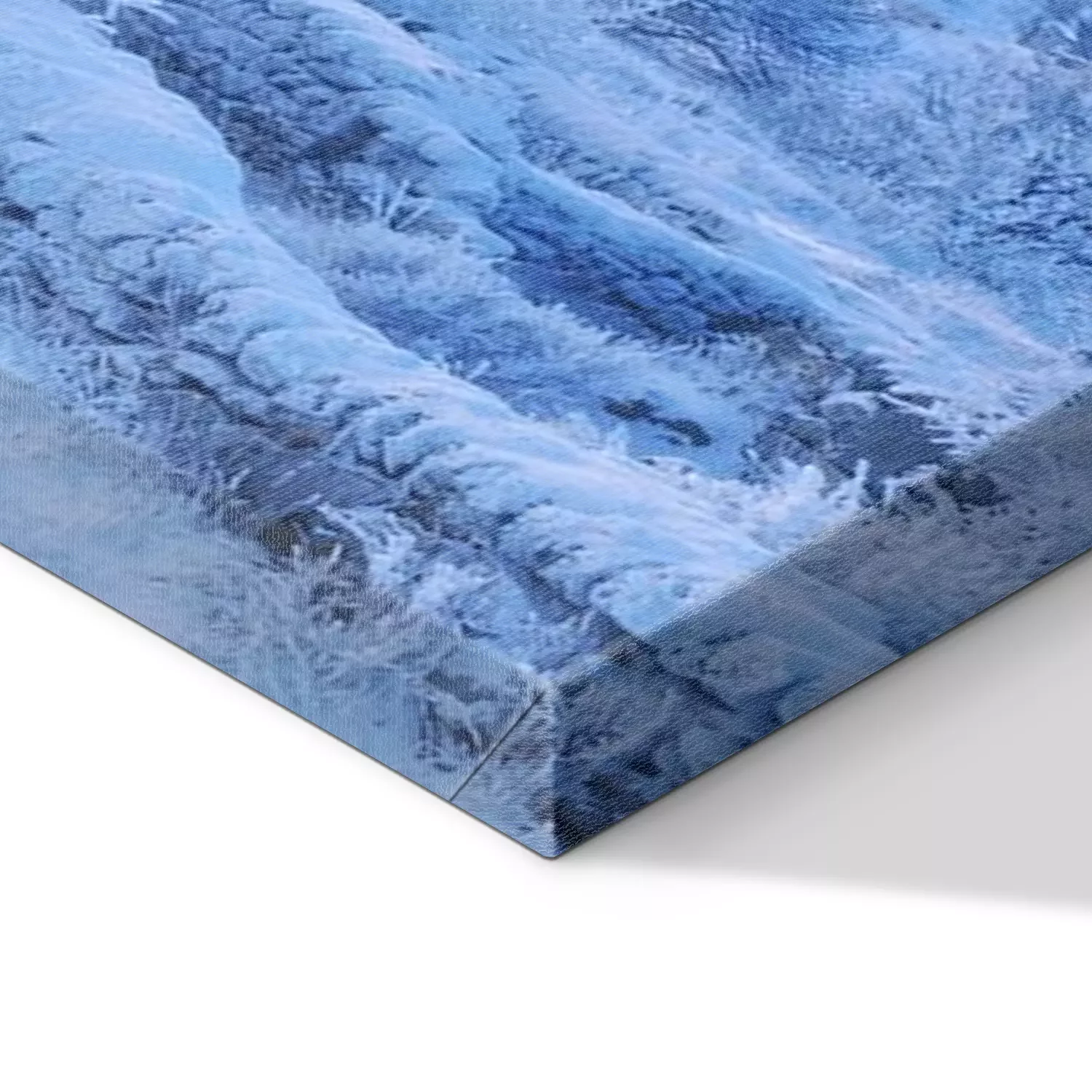 De print wordt aangebracht op hoogwaardig canvas dat op een schildersweefgetouw (spieraam) wordt gespannen. Omdat de print de zijranden bedekt, hoeft het ontwerp niet met een extra kader te worden omlijst. Wij raden ook composities aan die uit meerdere foto's bestaan en zo een coherente compositie vormen.