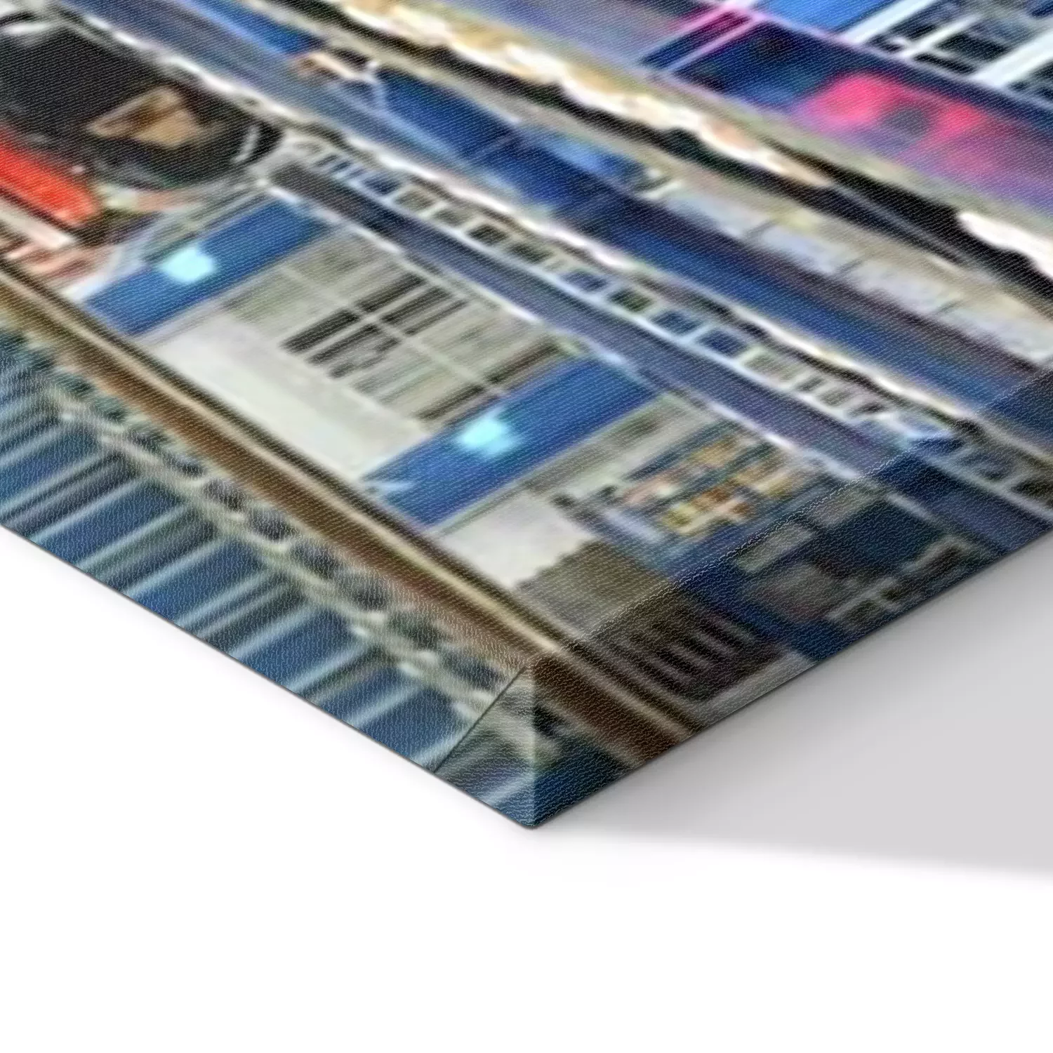 De print wordt aangebracht op hoogwaardig canvas dat op een schildersweefgetouw (spieraam) wordt gespannen. Omdat de print de zijranden bedekt, hoeft het ontwerp niet met een extra kader te worden omlijst. Wij raden ook composities aan die uit meerdere foto's bestaan en zo een coherente compositie vormen.