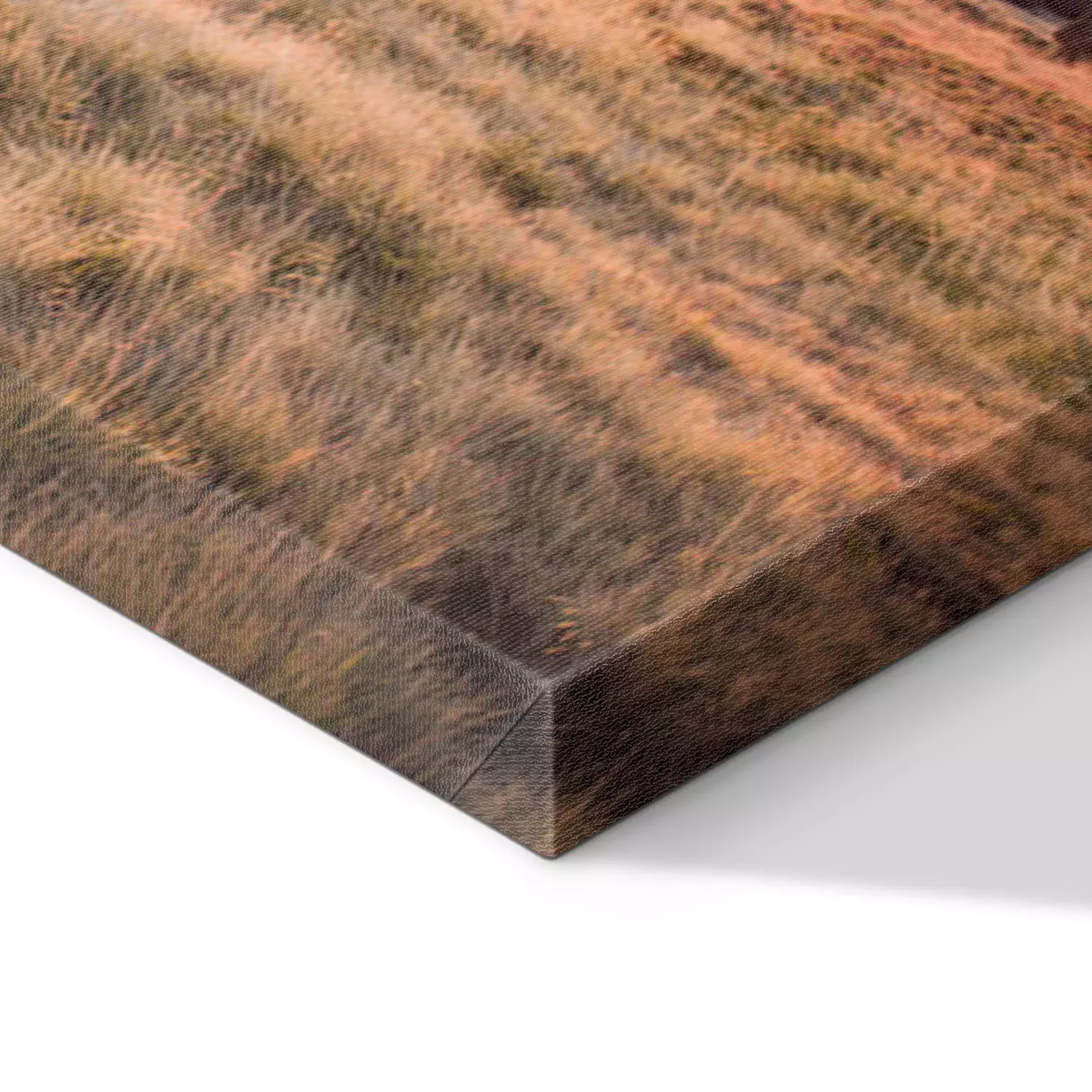 De print wordt aangebracht op hoogwaardig canvas dat op een schildersweefgetouw (spieraam) wordt gespannen. Omdat de print de zijranden bedekt, hoeft het ontwerp niet met een extra kader te worden omlijst. Wij raden ook composities aan die uit meerdere foto's bestaan en zo een coherente compositie vormen.