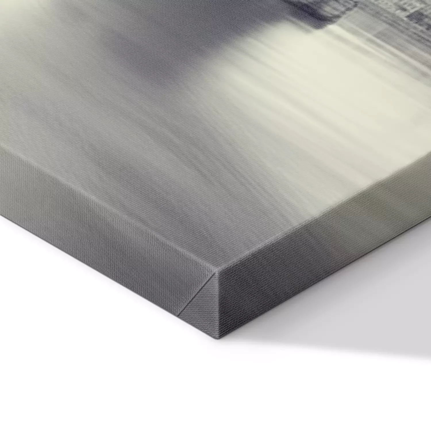 De print wordt aangebracht op hoogwaardig canvas dat op een schildersweefgetouw (spieraam) wordt gespannen. Omdat de print de zijranden bedekt, hoeft het ontwerp niet met een extra kader te worden omlijst. Wij raden ook composities aan die uit meerdere foto's bestaan en zo een coherente compositie vormen.