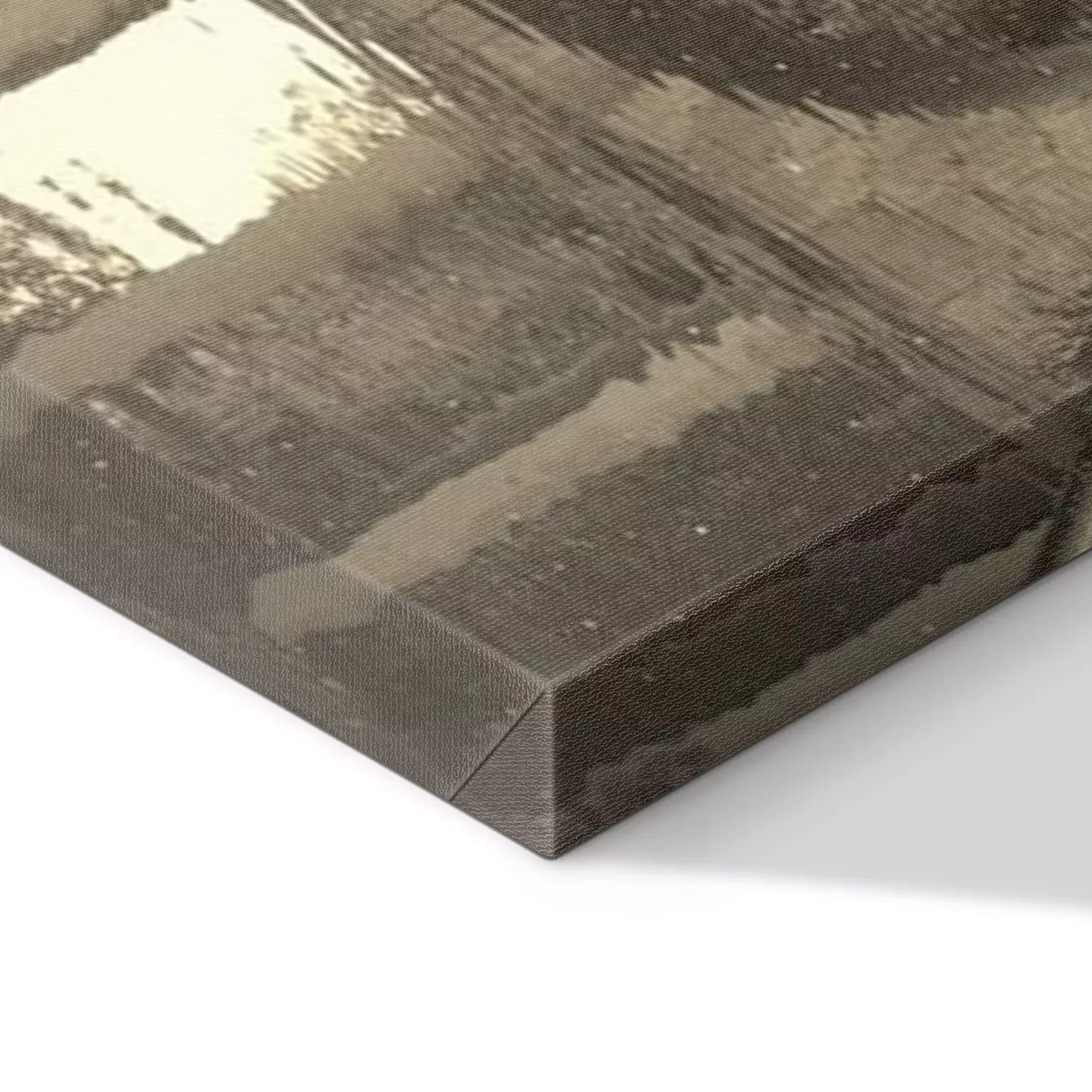 De print wordt aangebracht op hoogwaardig canvas dat op een schildersweefgetouw (spieraam) wordt gespannen. Omdat de print de zijranden bedekt, hoeft het ontwerp niet met een extra kader te worden omlijst. Wij raden ook composities aan die uit meerdere foto's bestaan en zo een coherente compositie vormen.