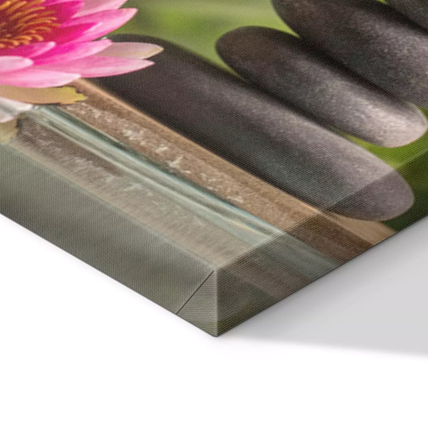 De print wordt aangebracht op hoogwaardig canvas dat op een schildersweefgetouw (spieraam) wordt gespannen. Omdat de print de zijranden bedekt, hoeft het ontwerp niet met een extra kader te worden omlijst. Wij raden ook composities aan die uit meerdere foto's bestaan en zo een coherente compositie vormen.