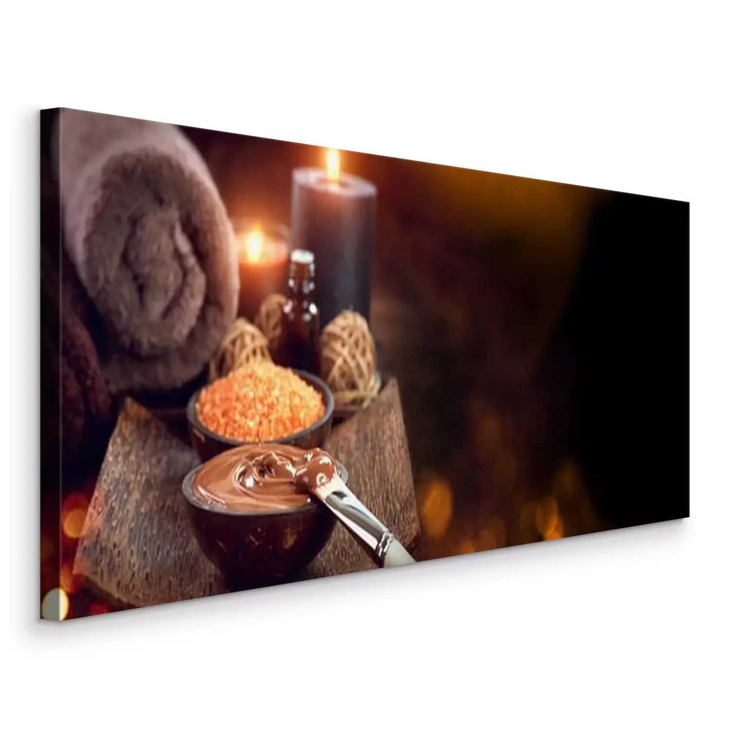 Canvas: Spa behandeling. Chocolade masker, badzout, bruine suiker scrub voor huid