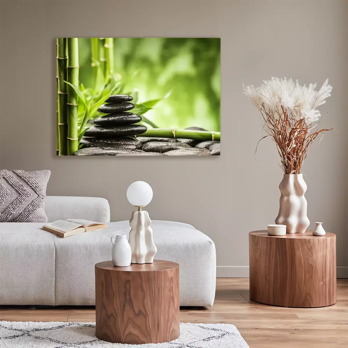 Canvas: Spa concept met zen basalt stenen en bamboe