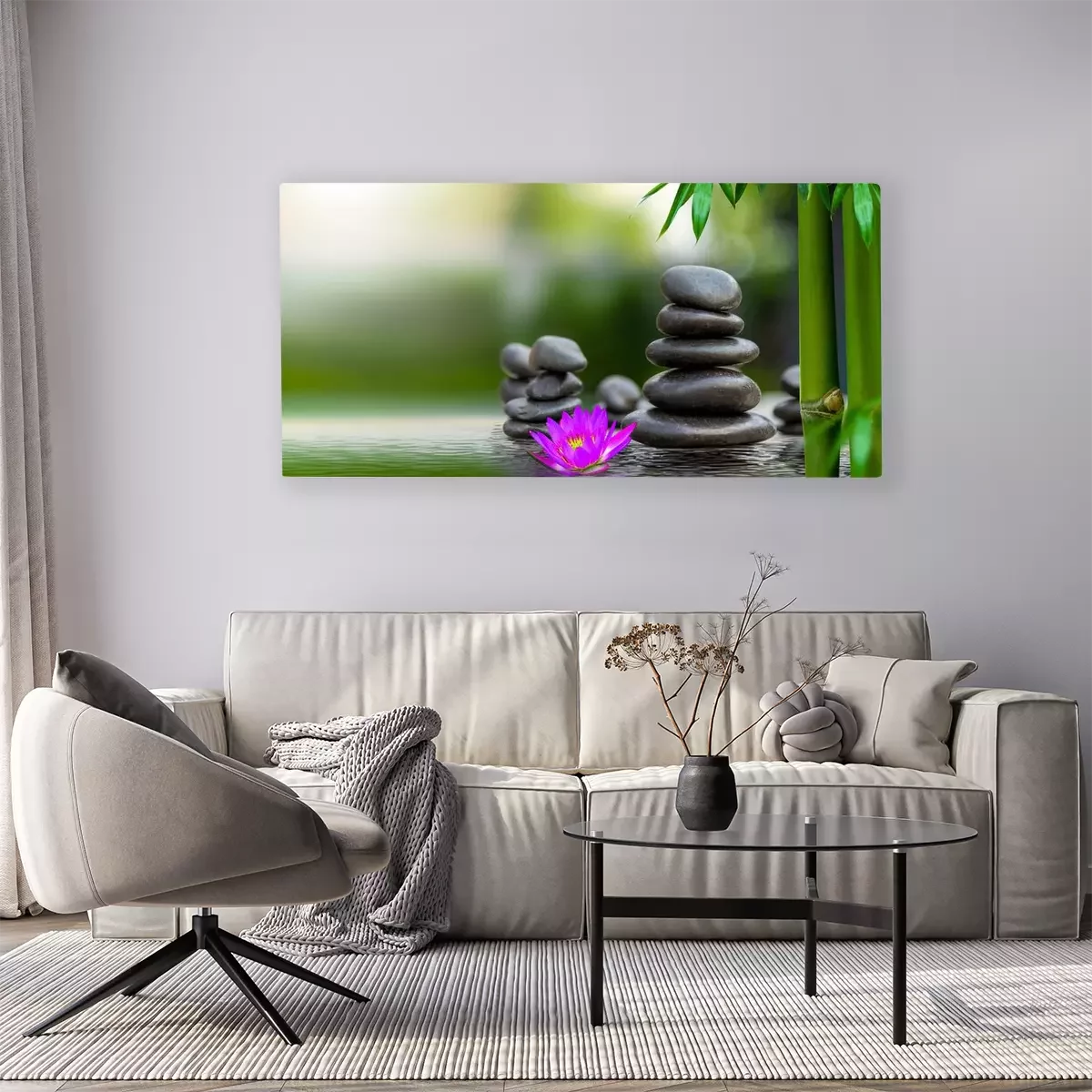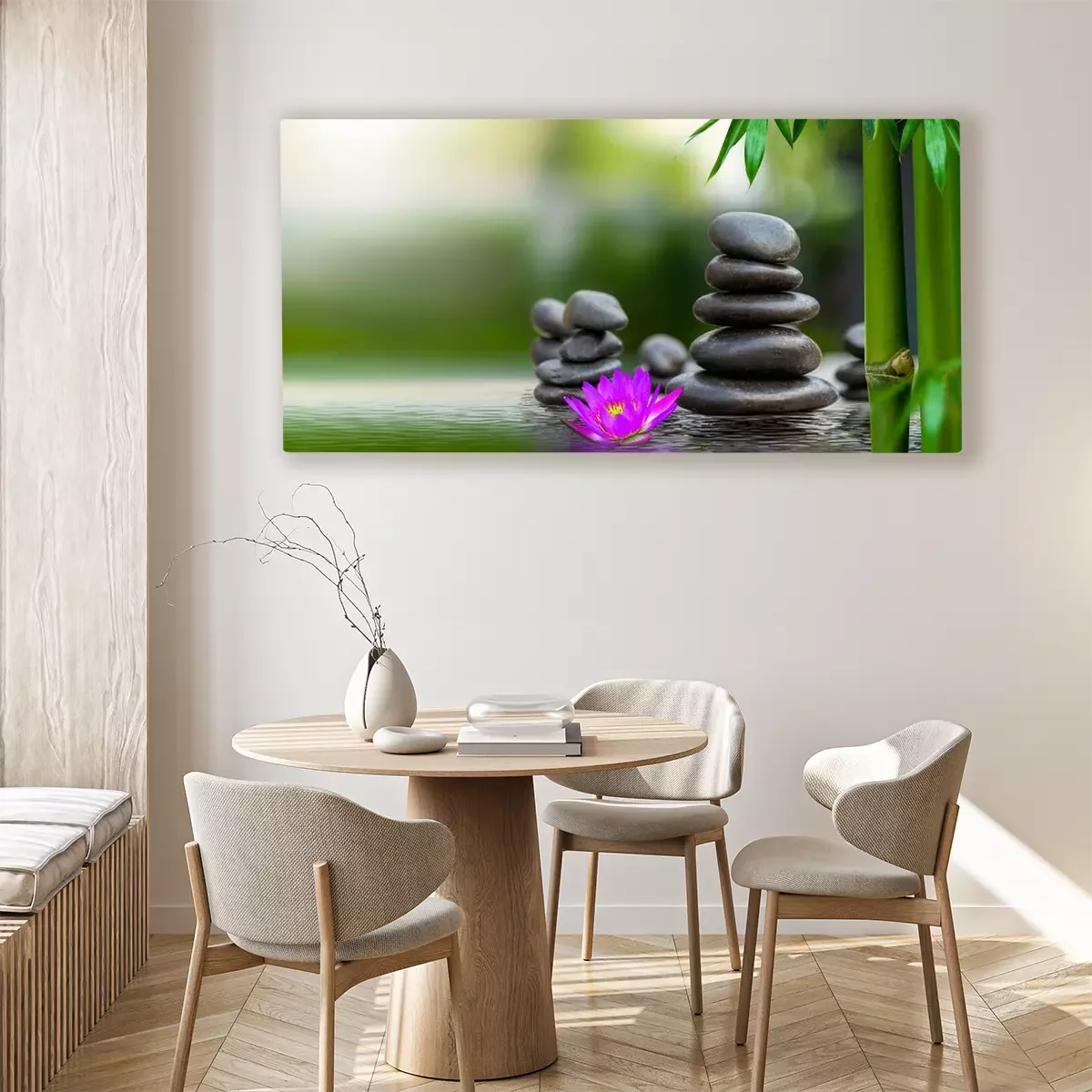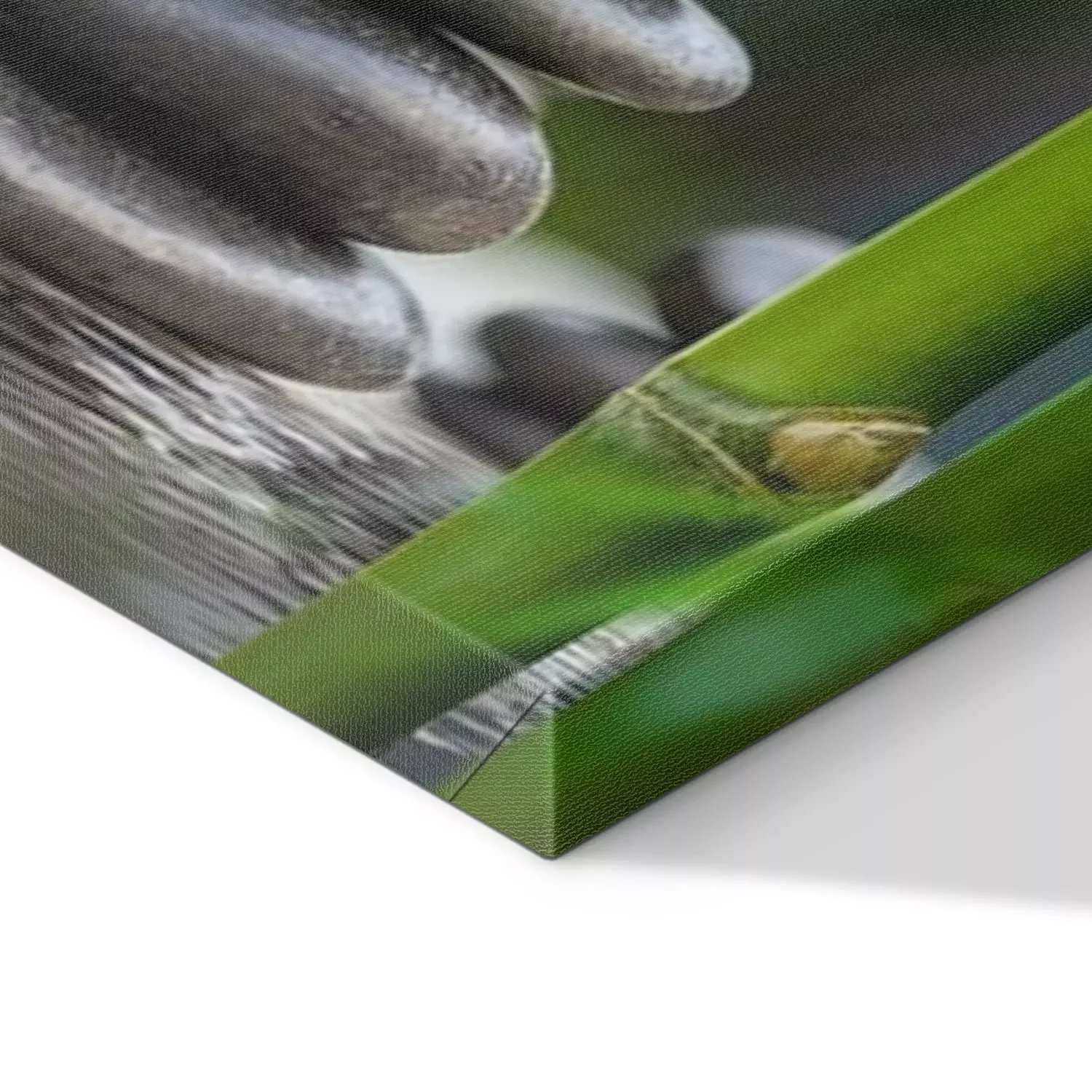 De print wordt aangebracht op hoogwaardig canvas dat op een schildersweefgetouw (spieraam) wordt gespannen. Omdat de print de zijranden bedekt, hoeft het ontwerp niet met een extra kader te worden omlijst. Wij raden ook composities aan die uit meerdere foto's bestaan en zo een coherente compositie vormen.
