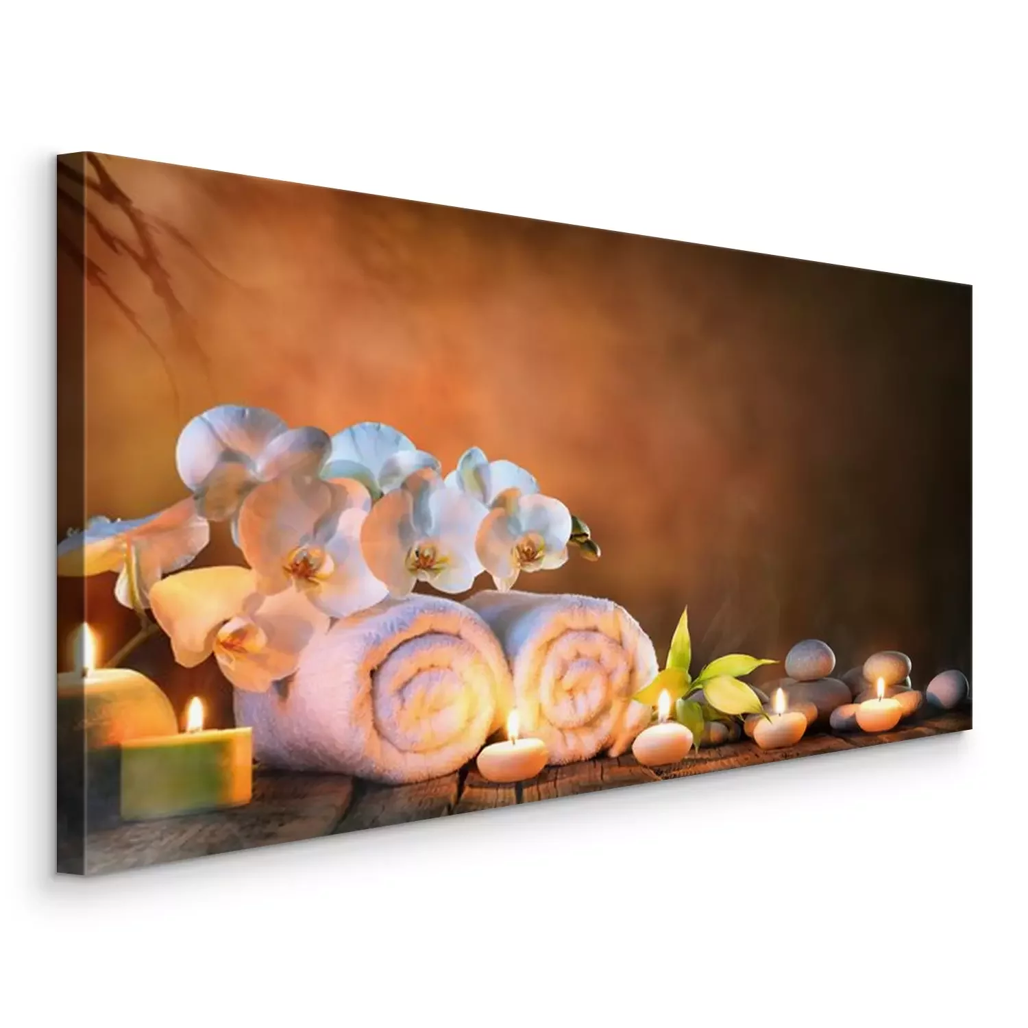 Canvas Spa - Paar Handdoeken met kaarsen en orchidee voor Natural Massage