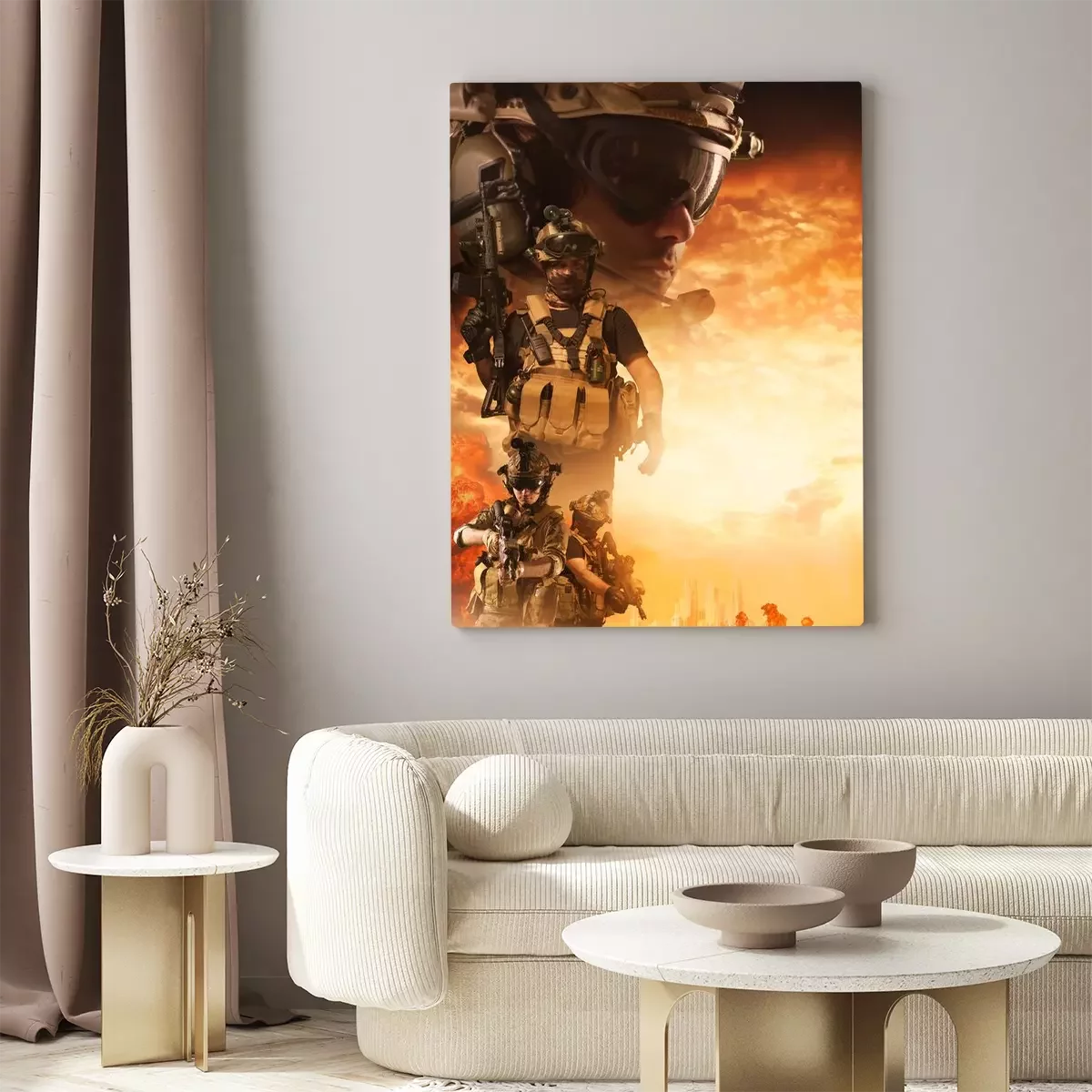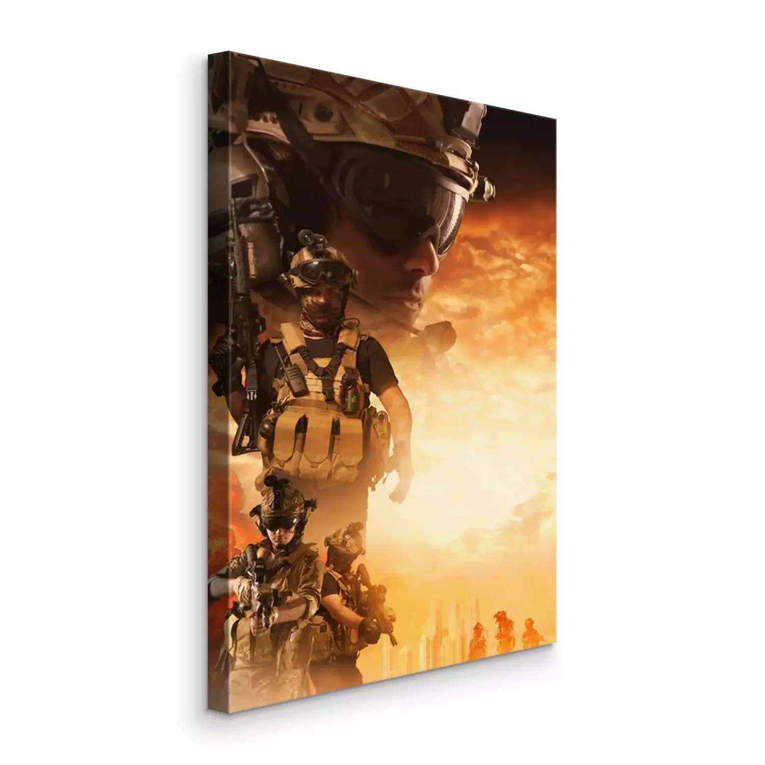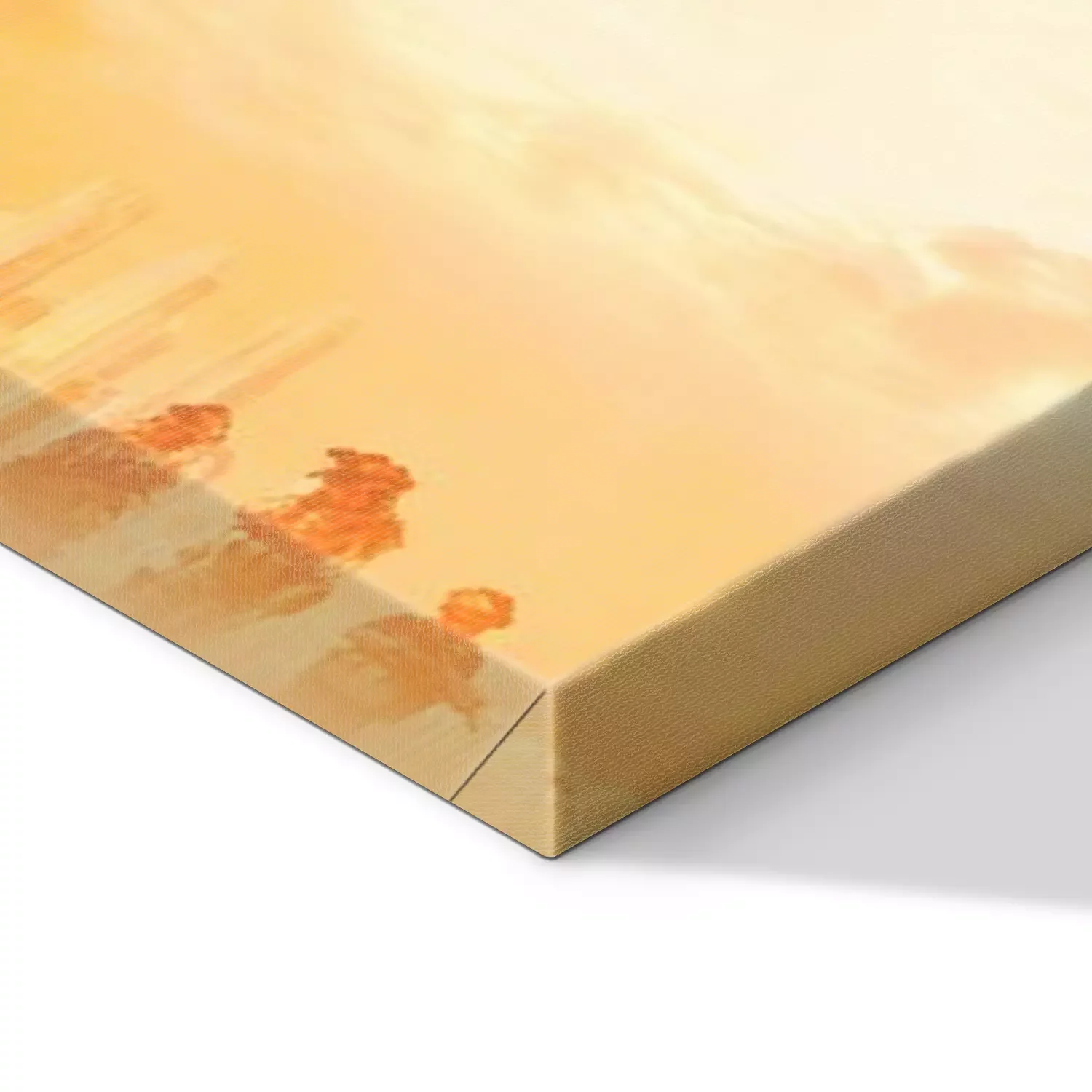 De print wordt aangebracht op hoogwaardig canvas dat op een schildersweefgetouw (spieraam) wordt gespannen. Omdat de print de zijranden bedekt, hoeft het ontwerp niet met een extra kader te worden omlijst. Wij raden ook composities aan die uit meerdere foto's bestaan en zo een coherente compositie vormen.