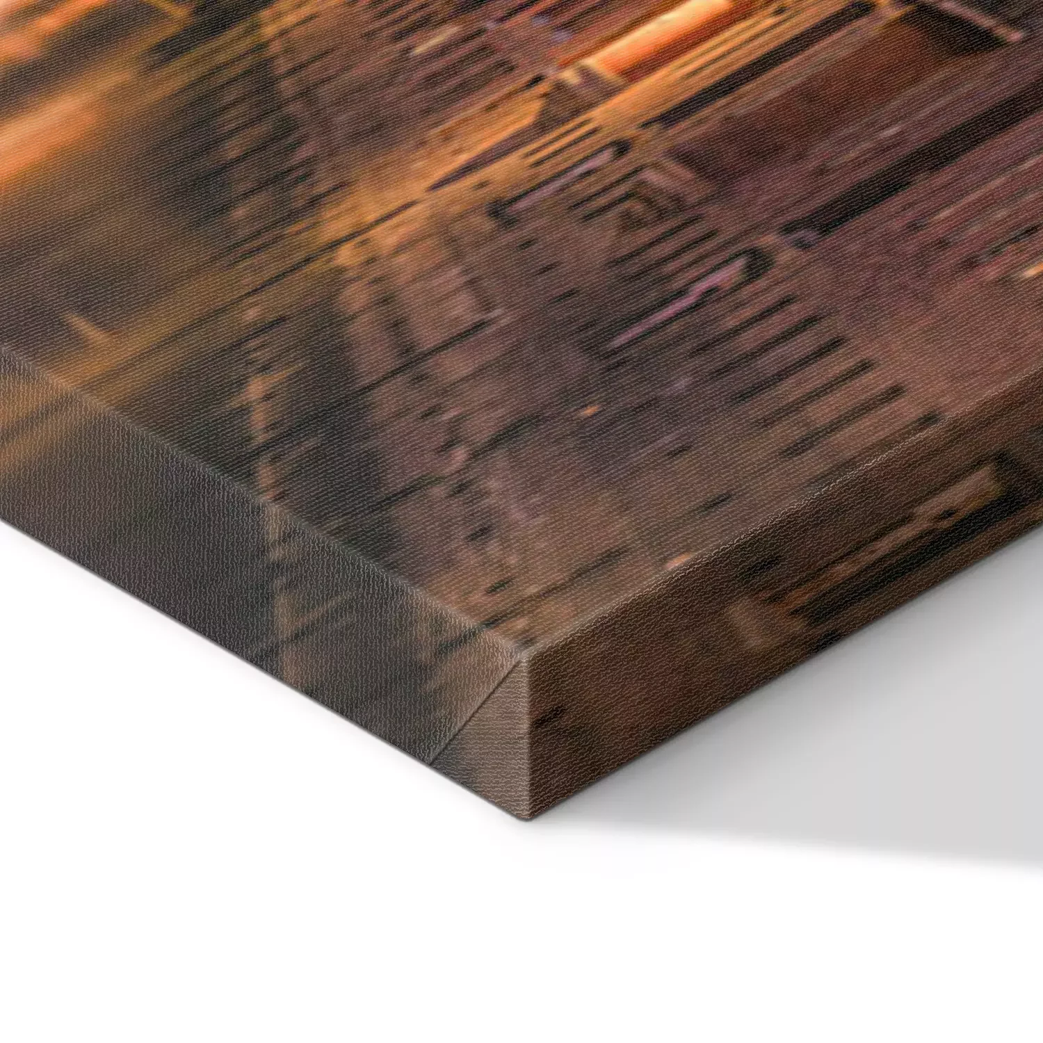 De print wordt aangebracht op hoogwaardig canvas dat op een schildersweefgetouw (spieraam) wordt gespannen. Omdat de print de zijranden bedekt, hoeft het ontwerp niet met een extra kader te worden omlijst. Wij raden ook composities aan die uit meerdere foto's bestaan en zo een coherente compositie vormen.