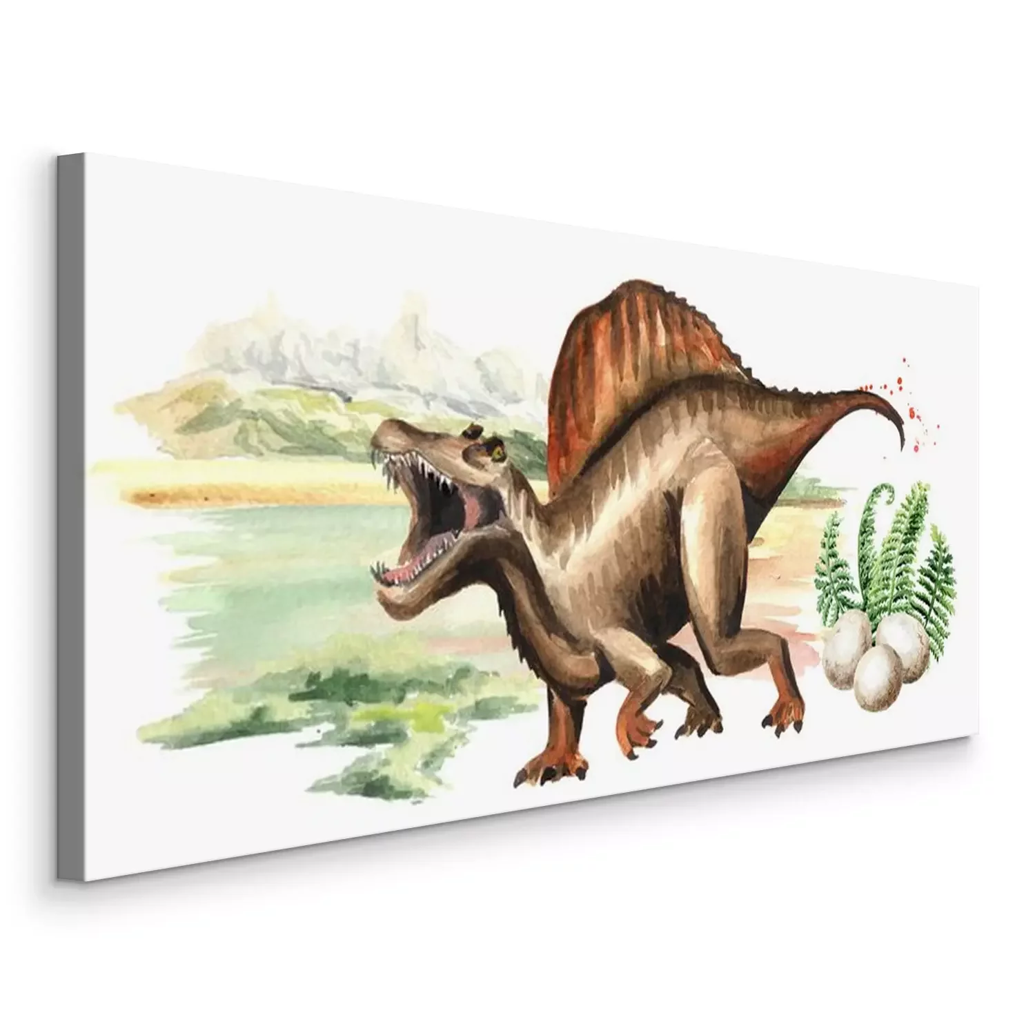 Canvas Spinosaurus op een aquarel landschapsachtergrond