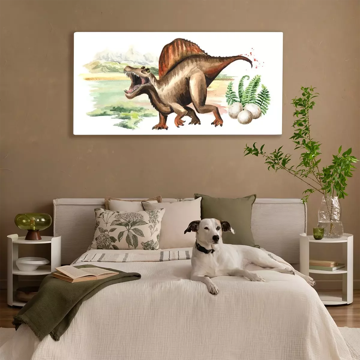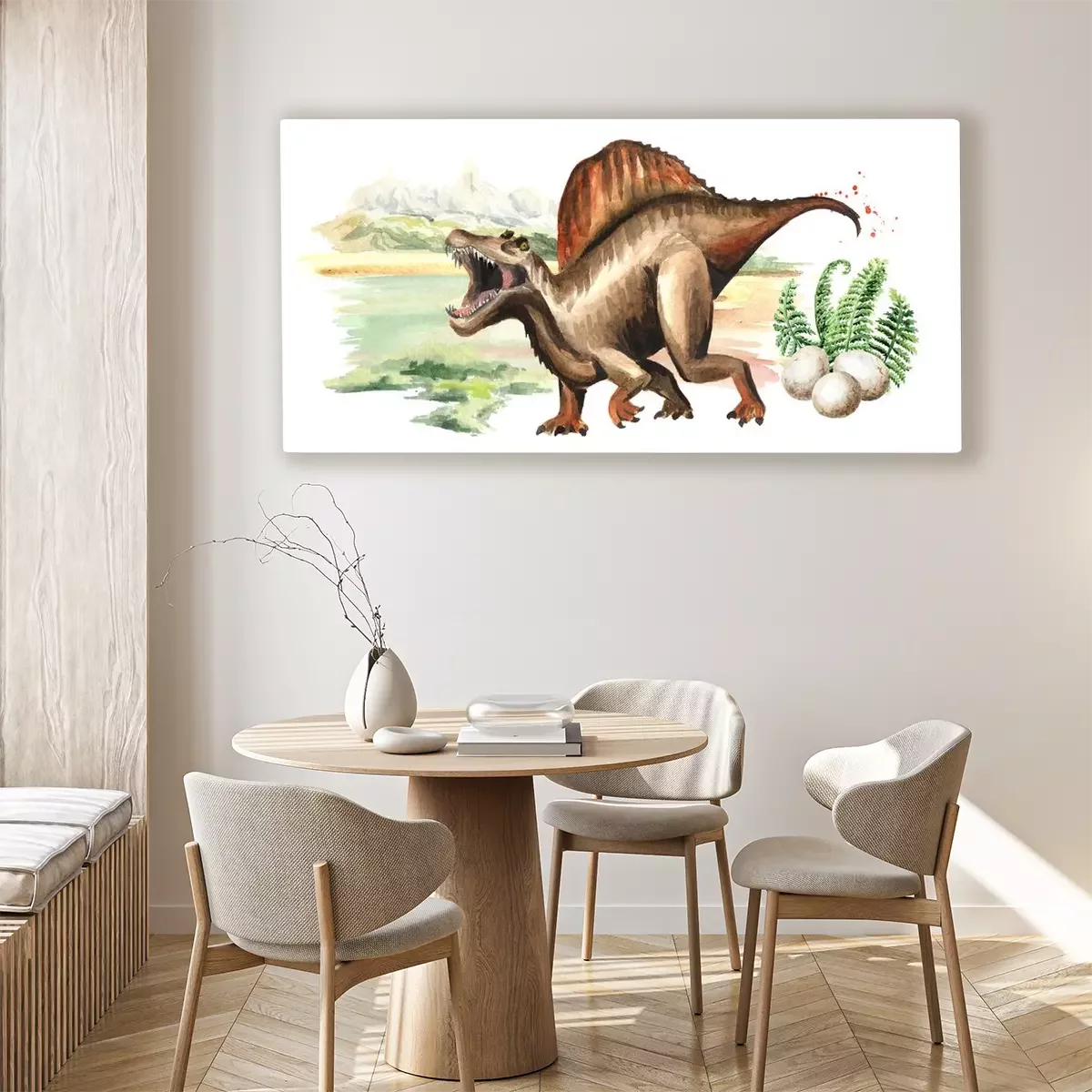 Canvas: Spinosaurus op een aquarel landschapsachtergrond