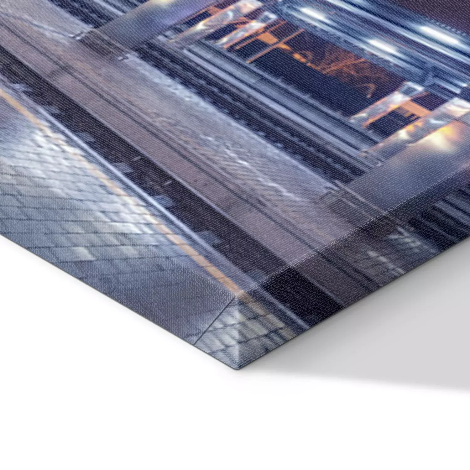 De print wordt aangebracht op hoogwaardig canvas dat op een schildersweefgetouw (spieraam) wordt gespannen. Omdat de print de zijranden bedekt, hoeft het ontwerp niet met een extra kader te worden omlijst. Wij raden ook composities aan die uit meerdere foto's bestaan en zo een coherente compositie vormen.