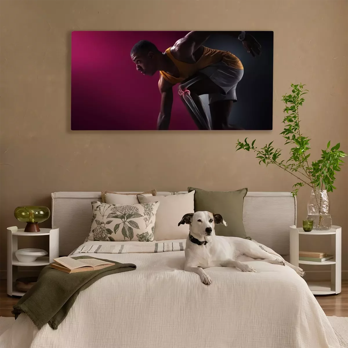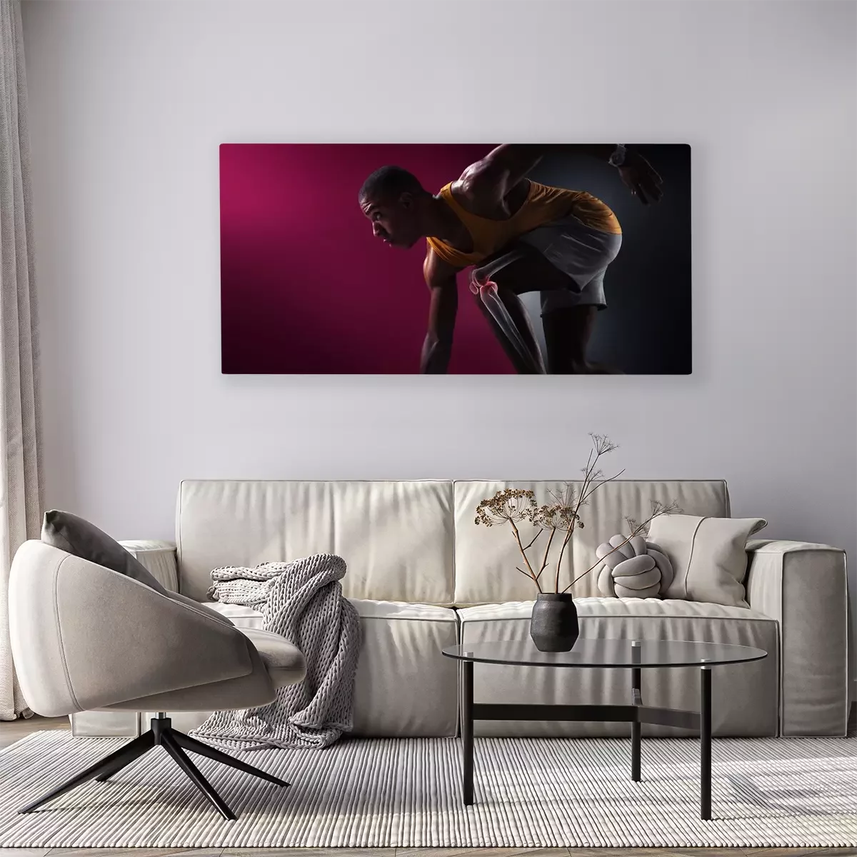 Canvas Sport. Geïsoleerde atleet runner. Silhouet. Begin