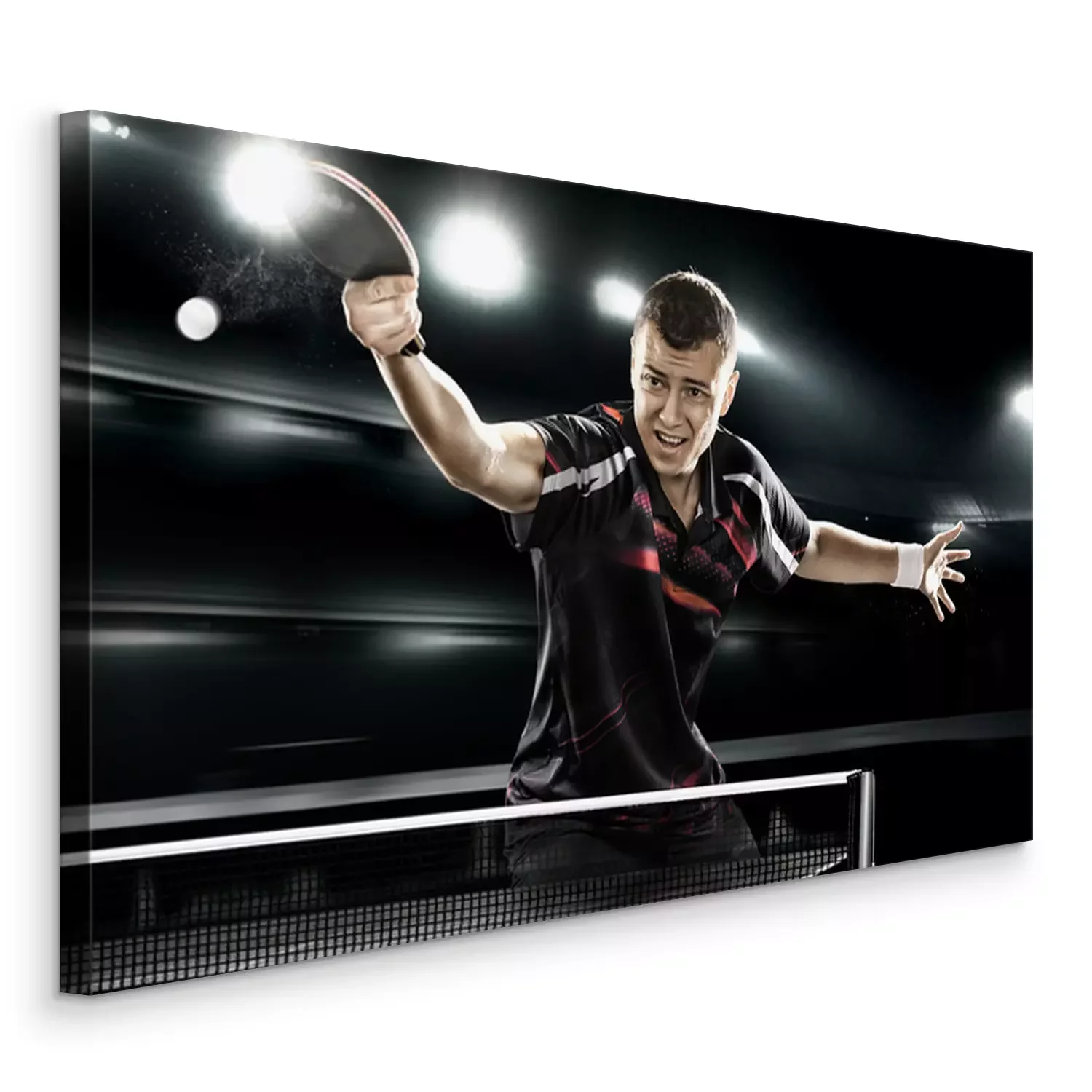 Canvas: Sportieve man tennis-speler op zwarte achtergrond