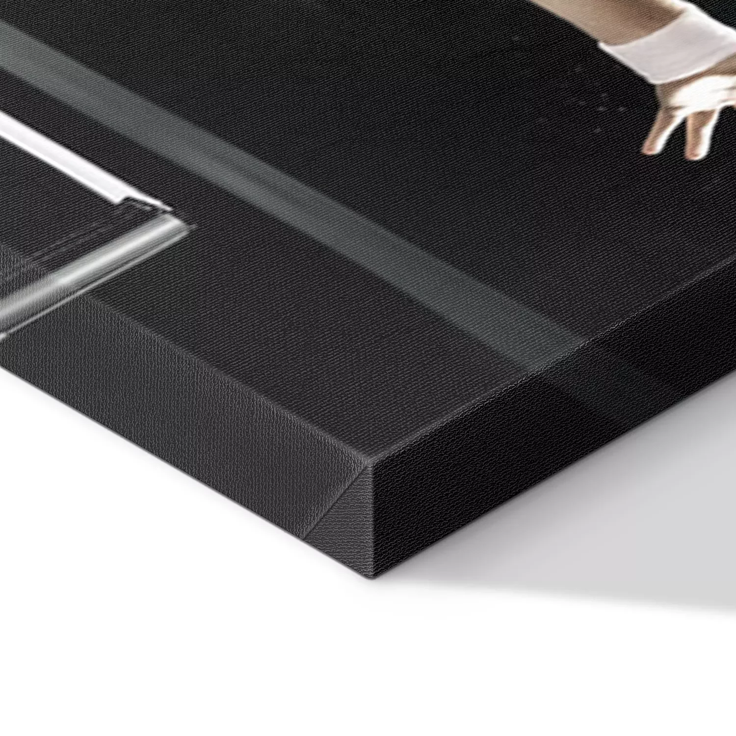 De print wordt aangebracht op hoogwaardig canvas dat op een schildersweefgetouw (spieraam) wordt gespannen. Omdat de print de zijranden bedekt, hoeft het ontwerp niet met een extra kader te worden omlijst. Wij raden ook composities aan die uit meerdere foto's bestaan en zo een coherente compositie vormen.