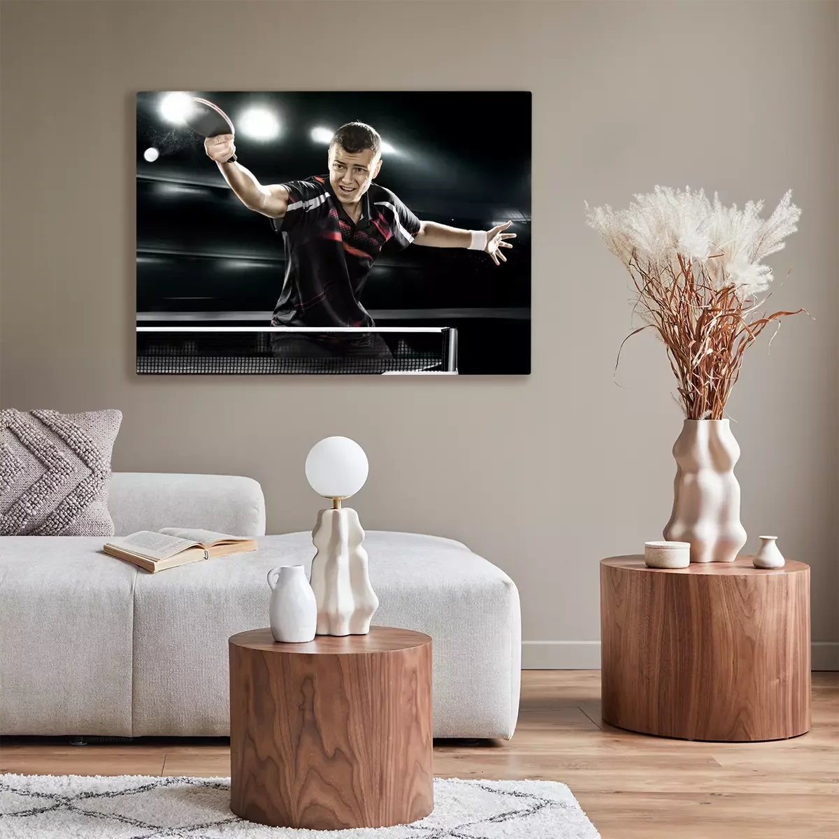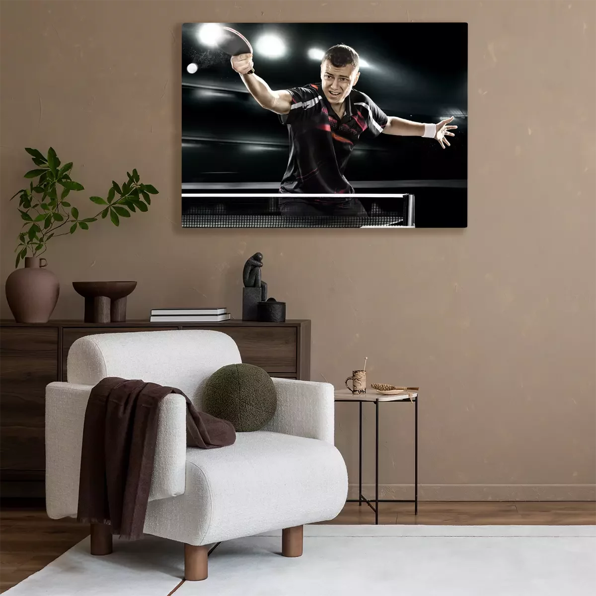 Canvas Sportieve man tennis-speler op zwarte achtergrond