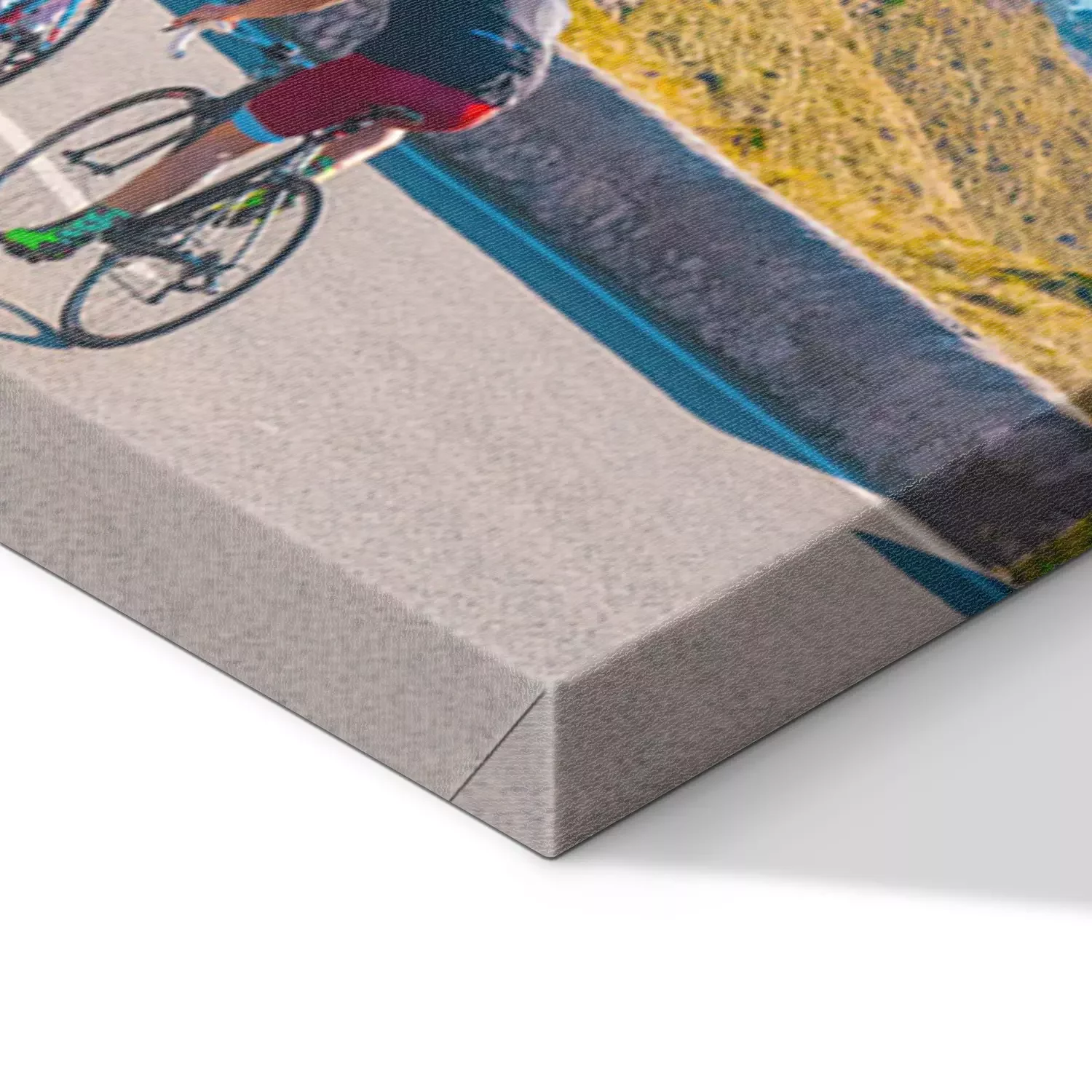 De print wordt aangebracht op hoogwaardig canvas dat op een schildersweefgetouw (spieraam) wordt gespannen. Omdat de print de zijranden bedekt, hoeft het ontwerp niet met een extra kader te worden omlijst. Wij raden ook composities aan die uit meerdere foto's bestaan en zo een coherente compositie vormen.