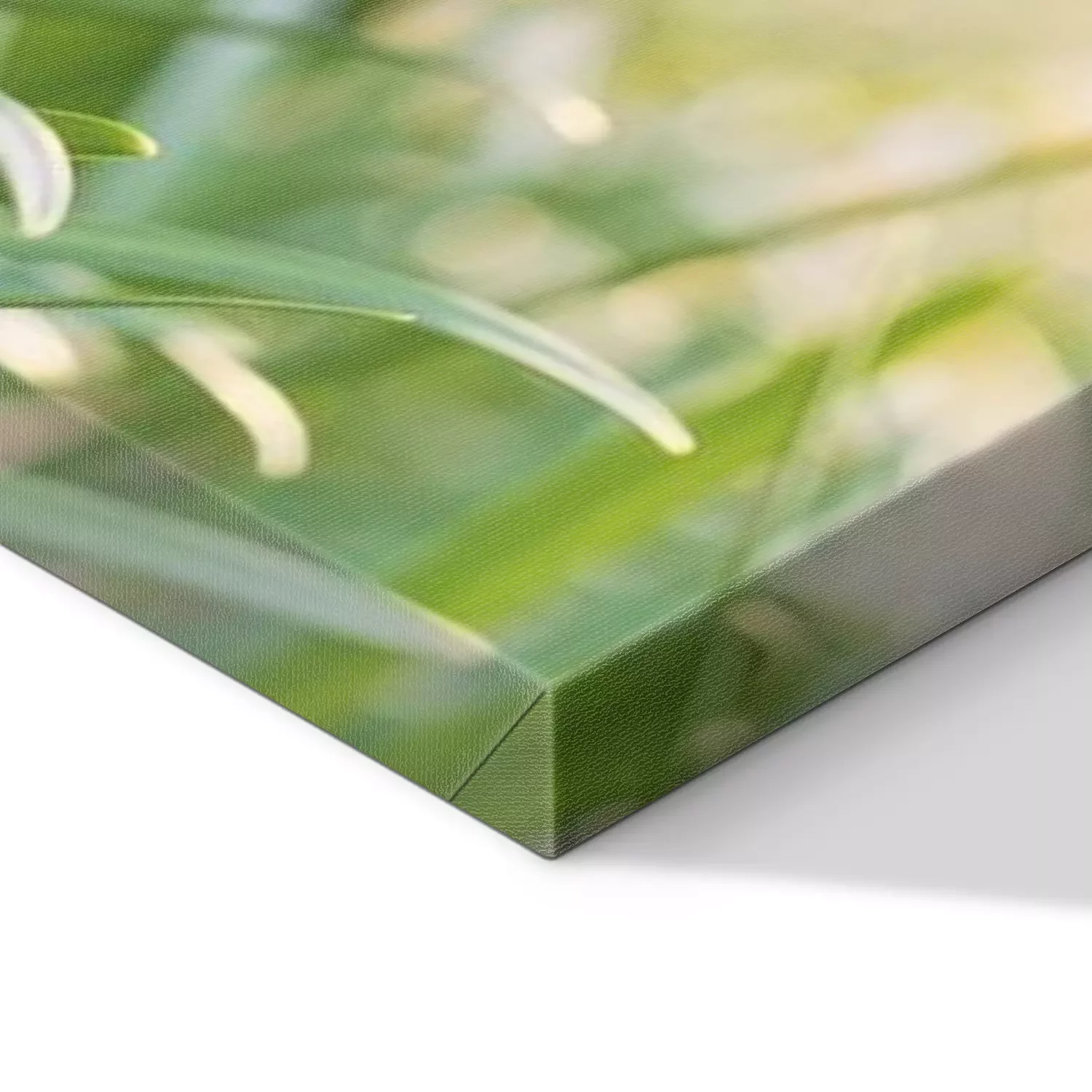 De print wordt aangebracht op hoogwaardig canvas dat op een schildersweefgetouw (spieraam) wordt gespannen. Omdat de print de zijranden bedekt, hoeft het ontwerp niet met een extra kader te worden omlijst. Wij raden ook composities aan die uit meerdere foto's bestaan en zo een coherente compositie vormen.