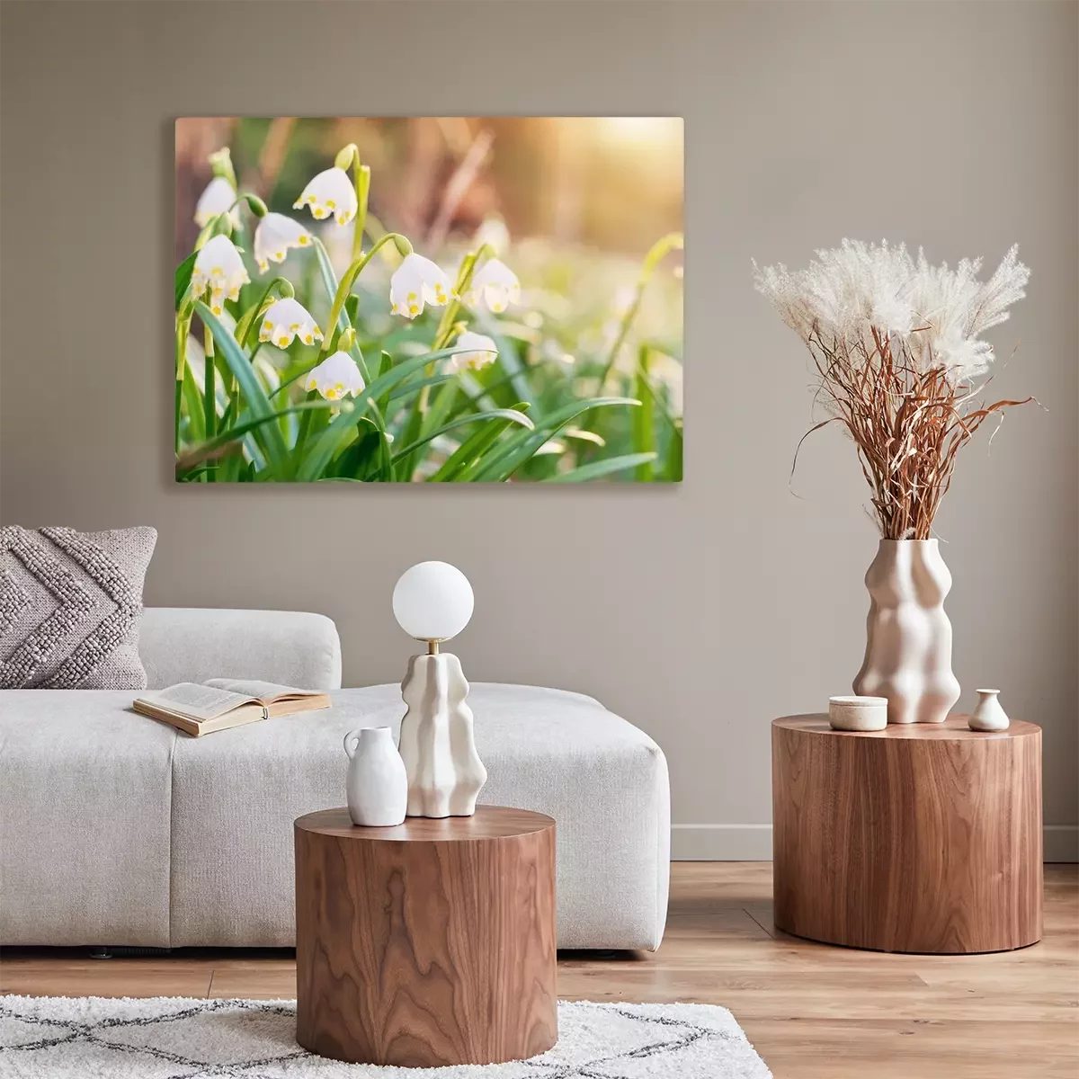 Canvas Spring flowers in the shining sunlight , Leucojum vernum, called spring snowflake