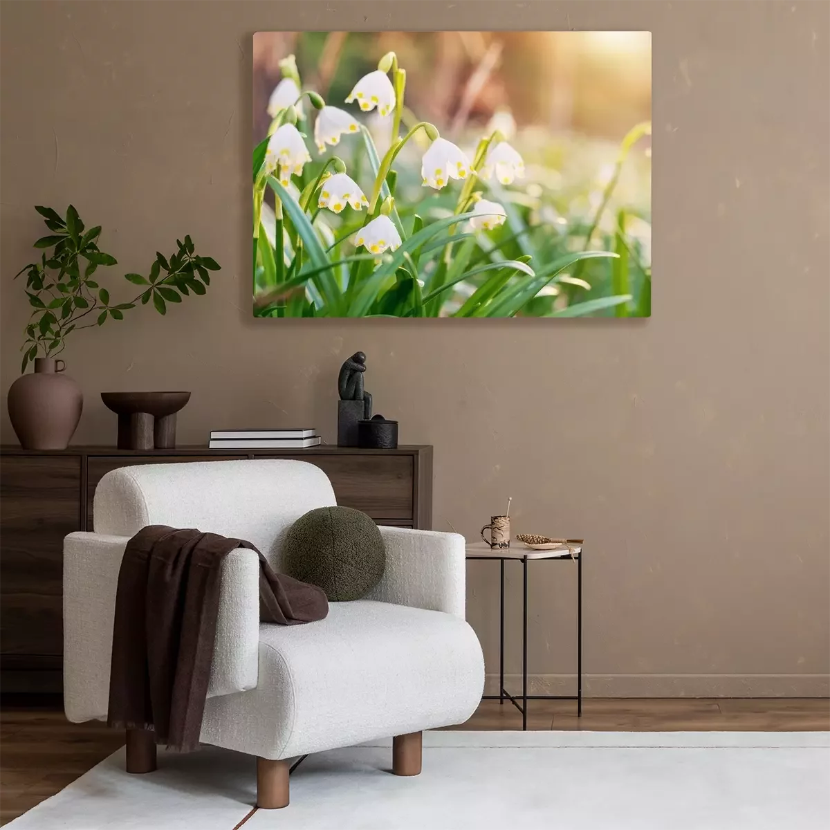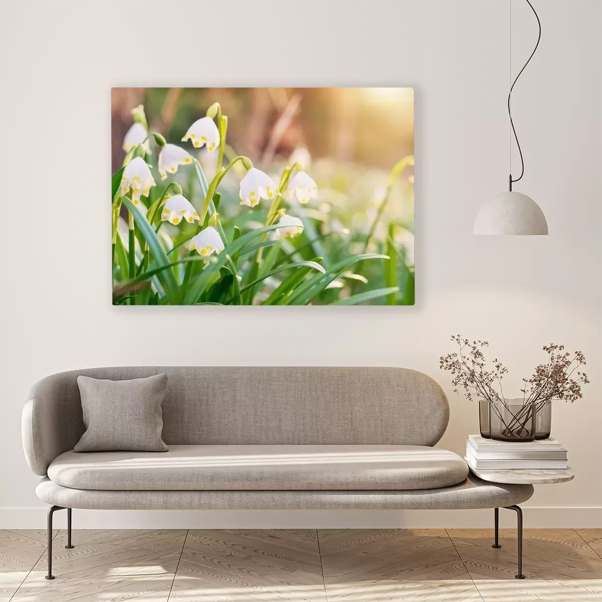 Canvas: Spring flowers in the shining sunlight , Leucojum vernum, called spring snowflake