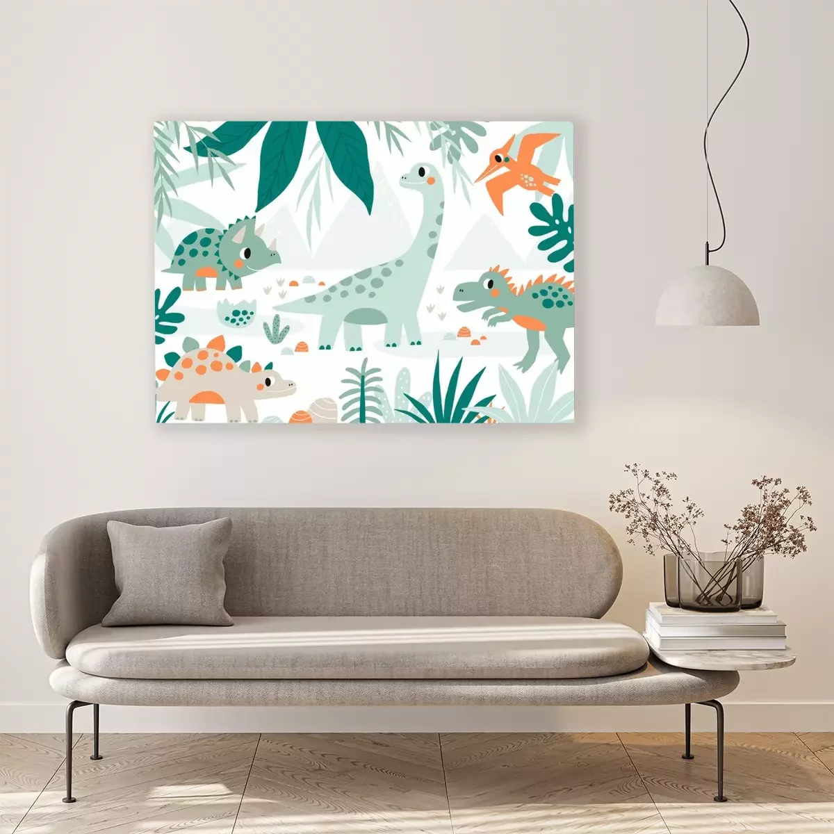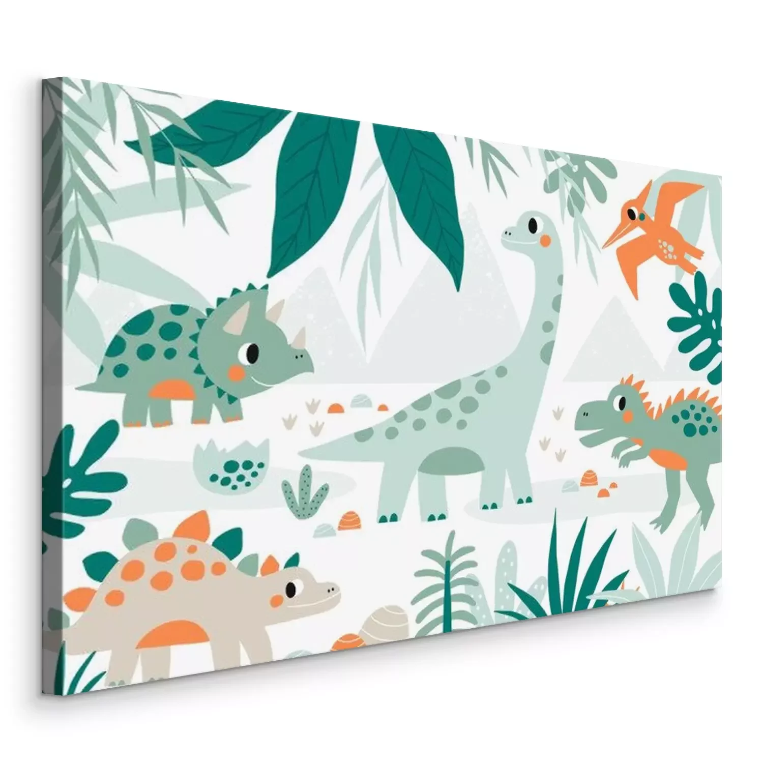 Canvas: Sprookjesachtige dinosaurussen tussen groene planten