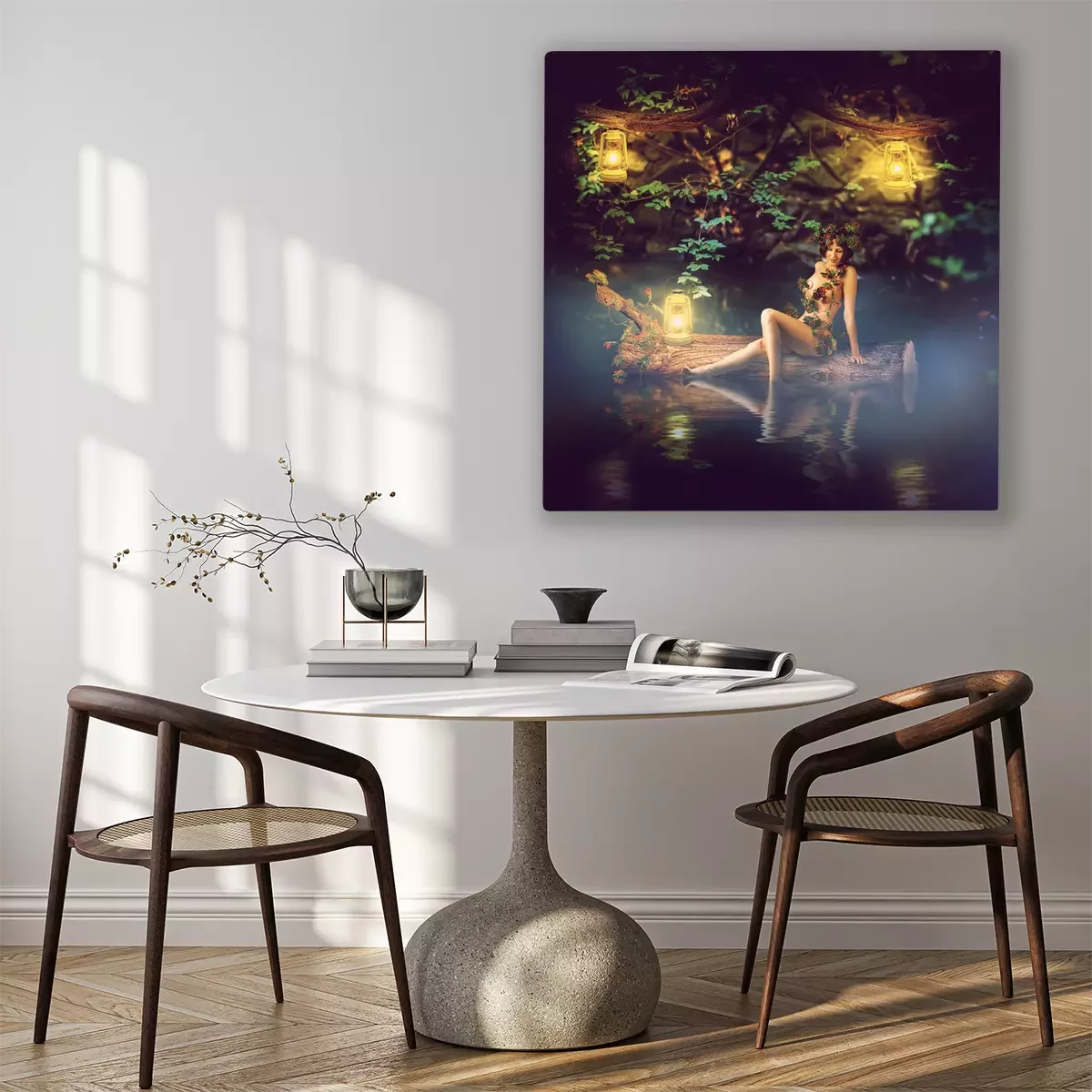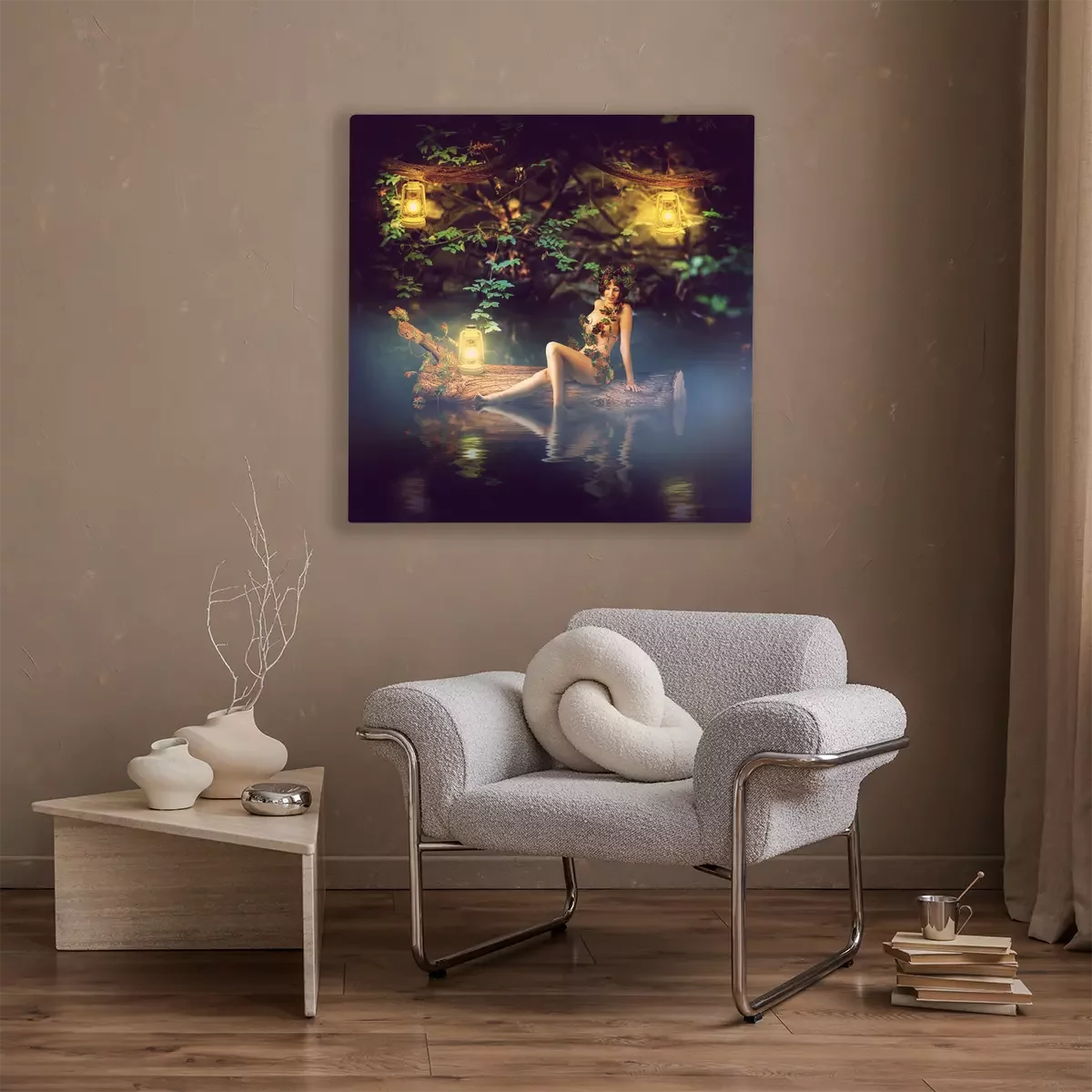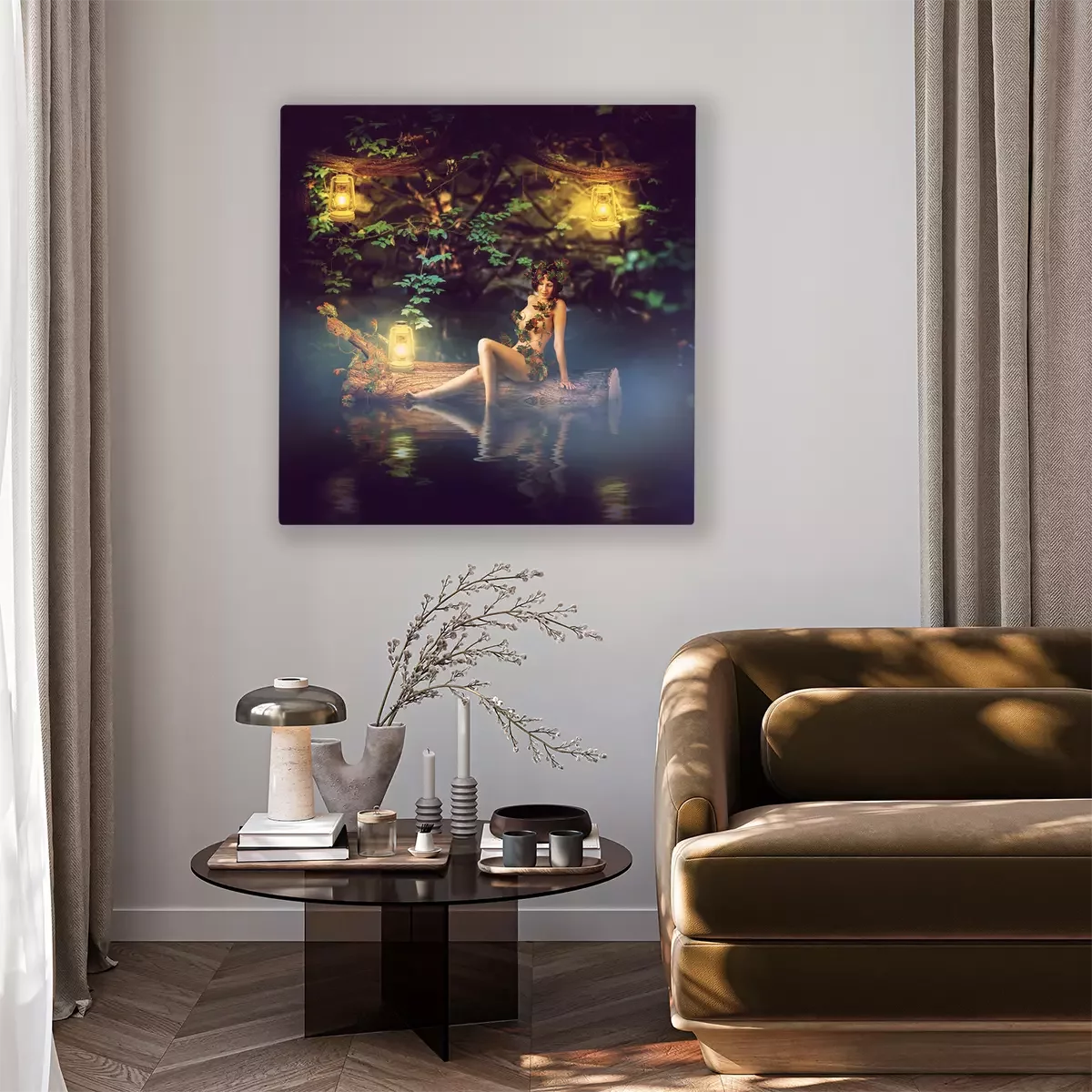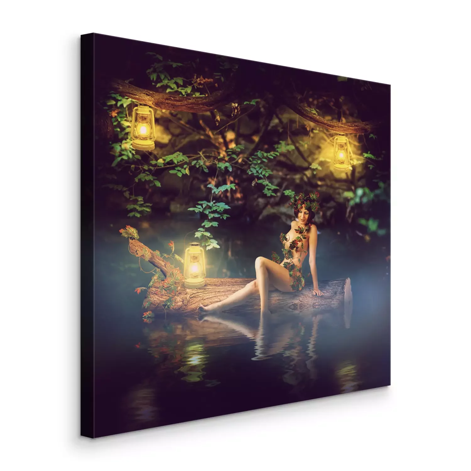 Canvas: sprookjesachtige mooie vrouw - hout nimf