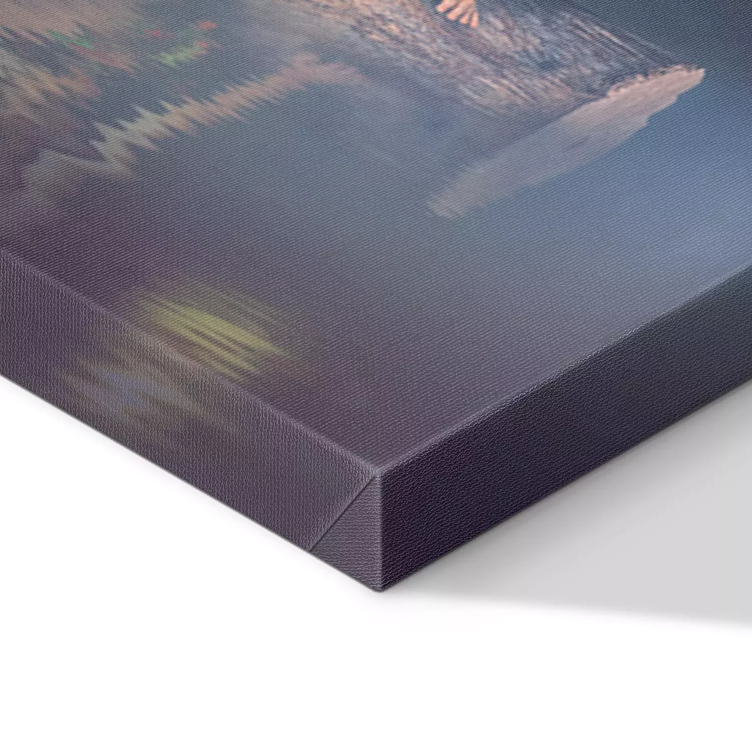 De print wordt aangebracht op hoogwaardig canvas dat op een schildersweefgetouw (spieraam) wordt gespannen. Omdat de print de zijranden bedekt, hoeft het ontwerp niet met een extra kader te worden omlijst. Wij raden ook composities aan die uit meerdere foto's bestaan en zo een coherente compositie vormen.