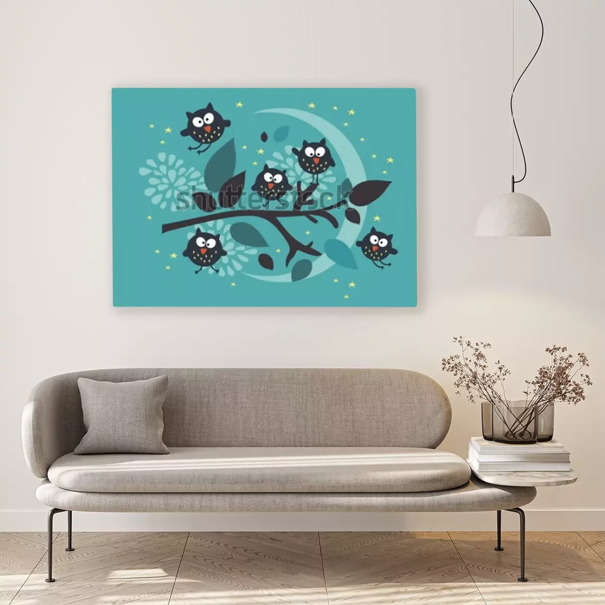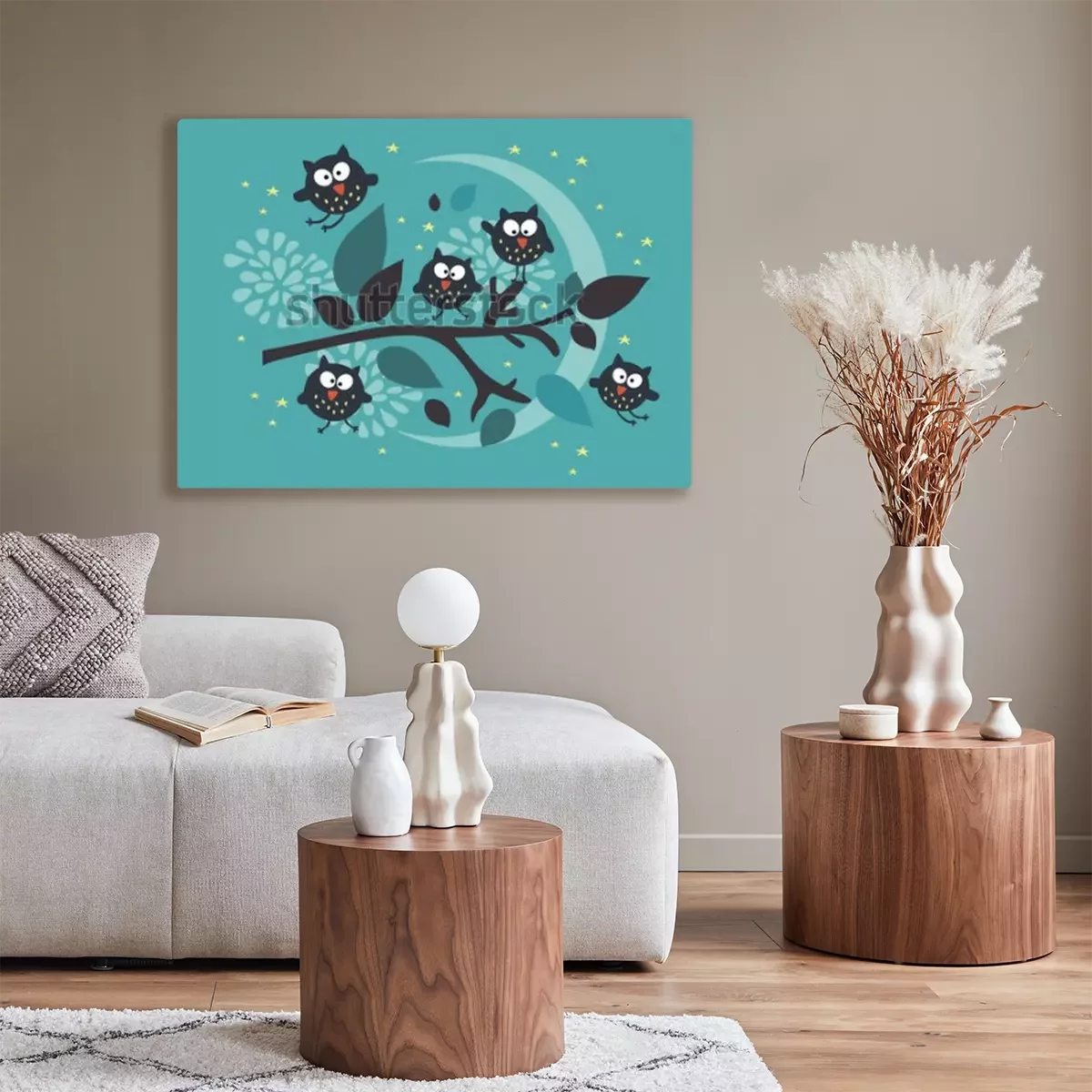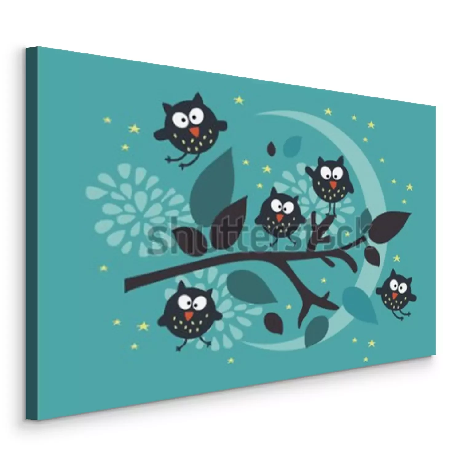 Canvas: Sprookjesachtige uilen zittend op een tak