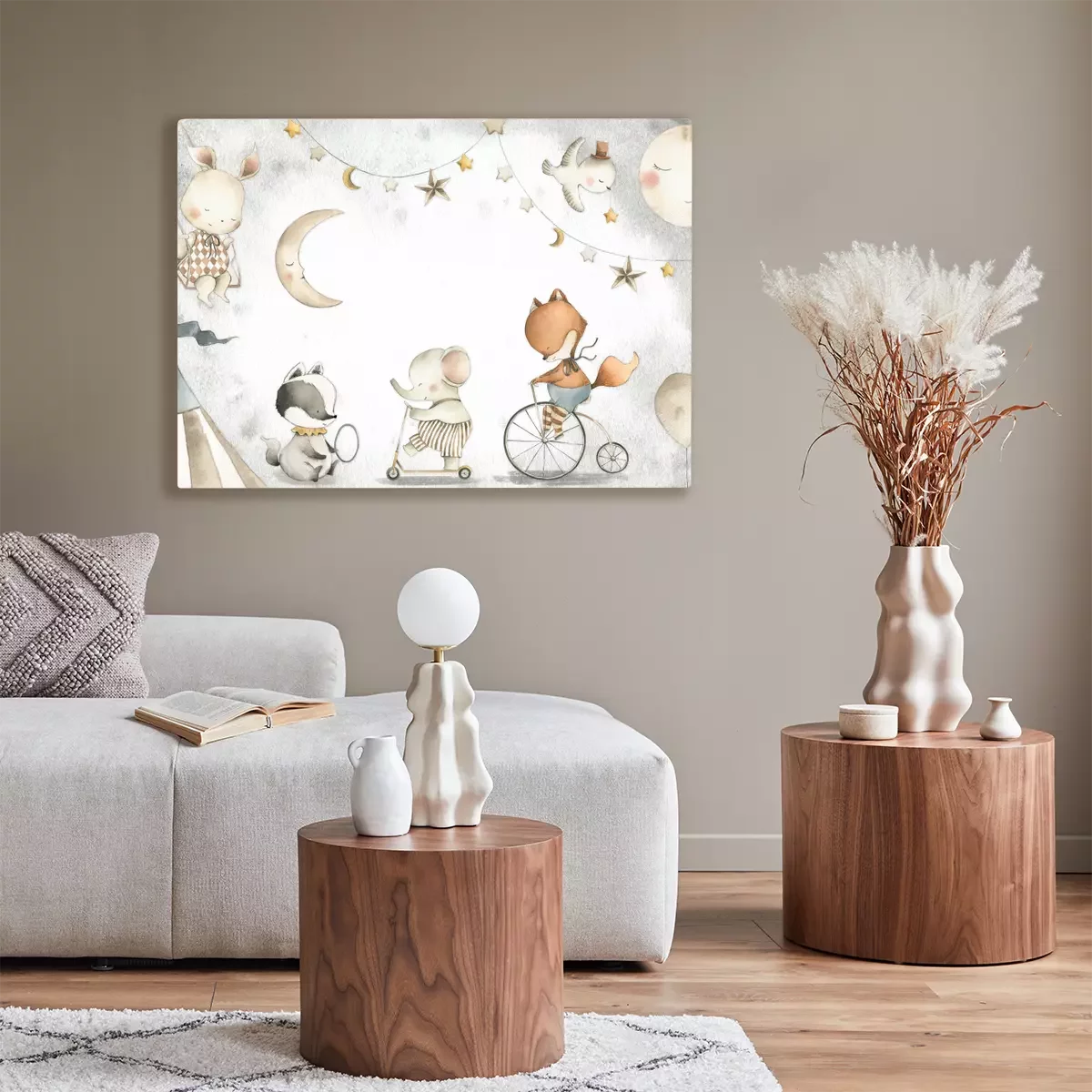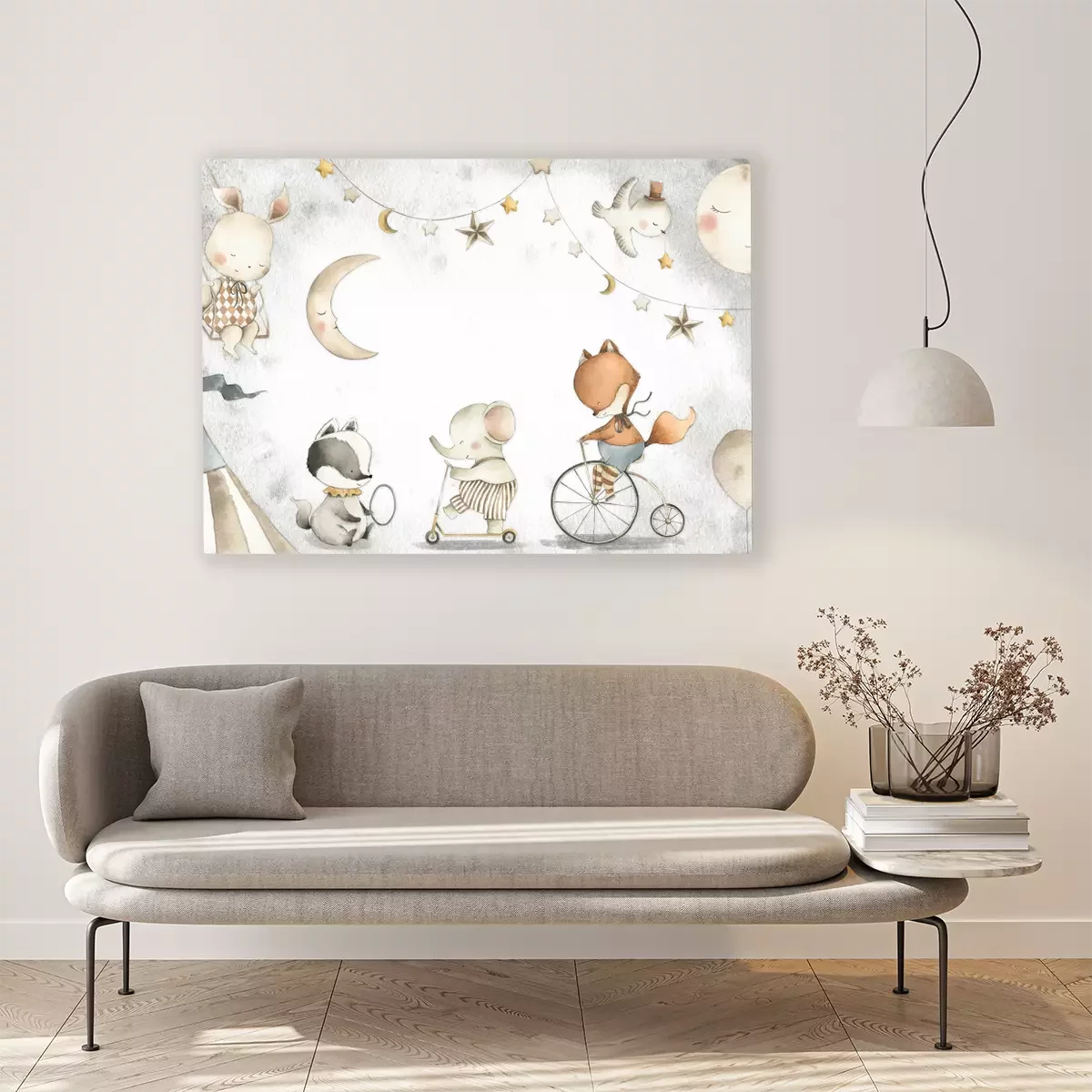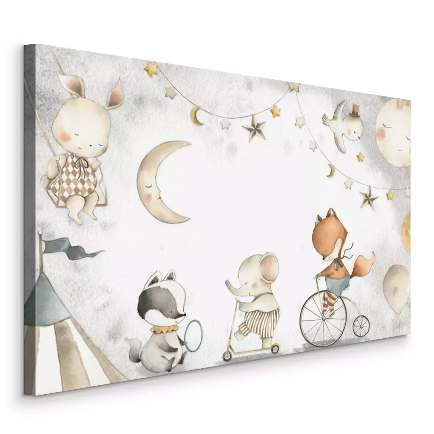 De print wordt aangebracht op hoogwaardig canvas dat op een schildersweefgetouw (spieraam) wordt gespannen. Omdat de print de zijranden bedekt, hoeft het ontwerp niet met een extra kader te worden omlijst. Wij raden ook composities aan die uit meerdere foto's bestaan en zo een coherente compositie vormen.