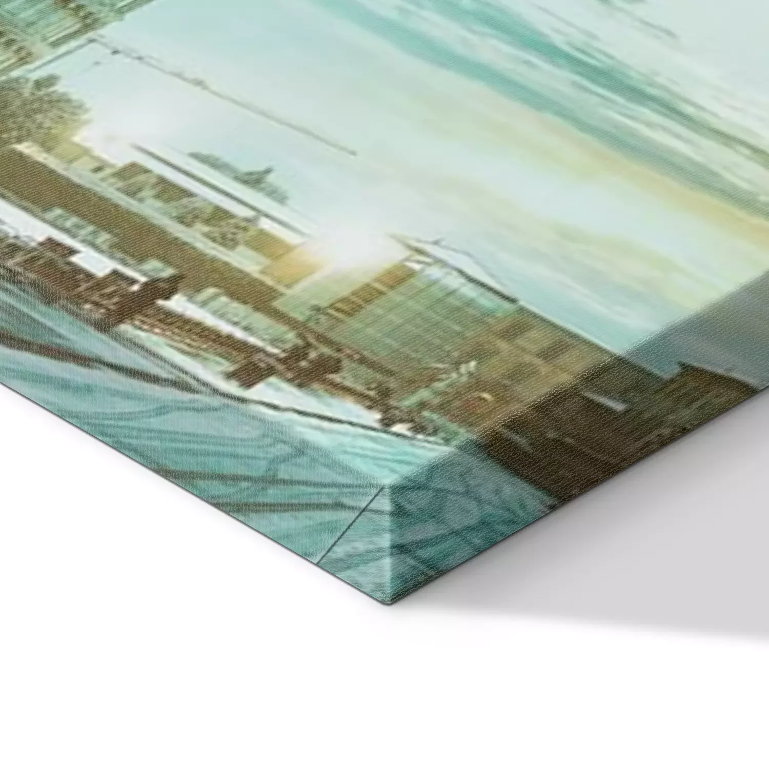 De print wordt aangebracht op hoogwaardig canvas dat op een schildersweefgetouw (spieraam) wordt gespannen. Omdat de print de zijranden bedekt, hoeft het ontwerp niet met een extra kader te worden omlijst. Wij raden ook composities aan die uit meerdere foto's bestaan en zo een coherente compositie vormen.
