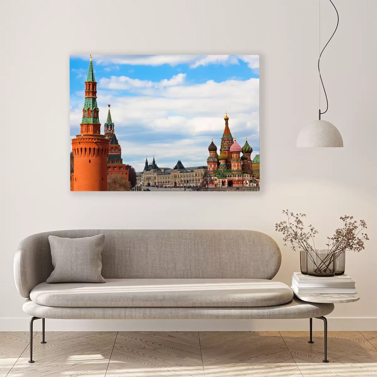 Canvas: St. Basil's Cathedral op het Rode Plein en het Kremlin torens in Moskou