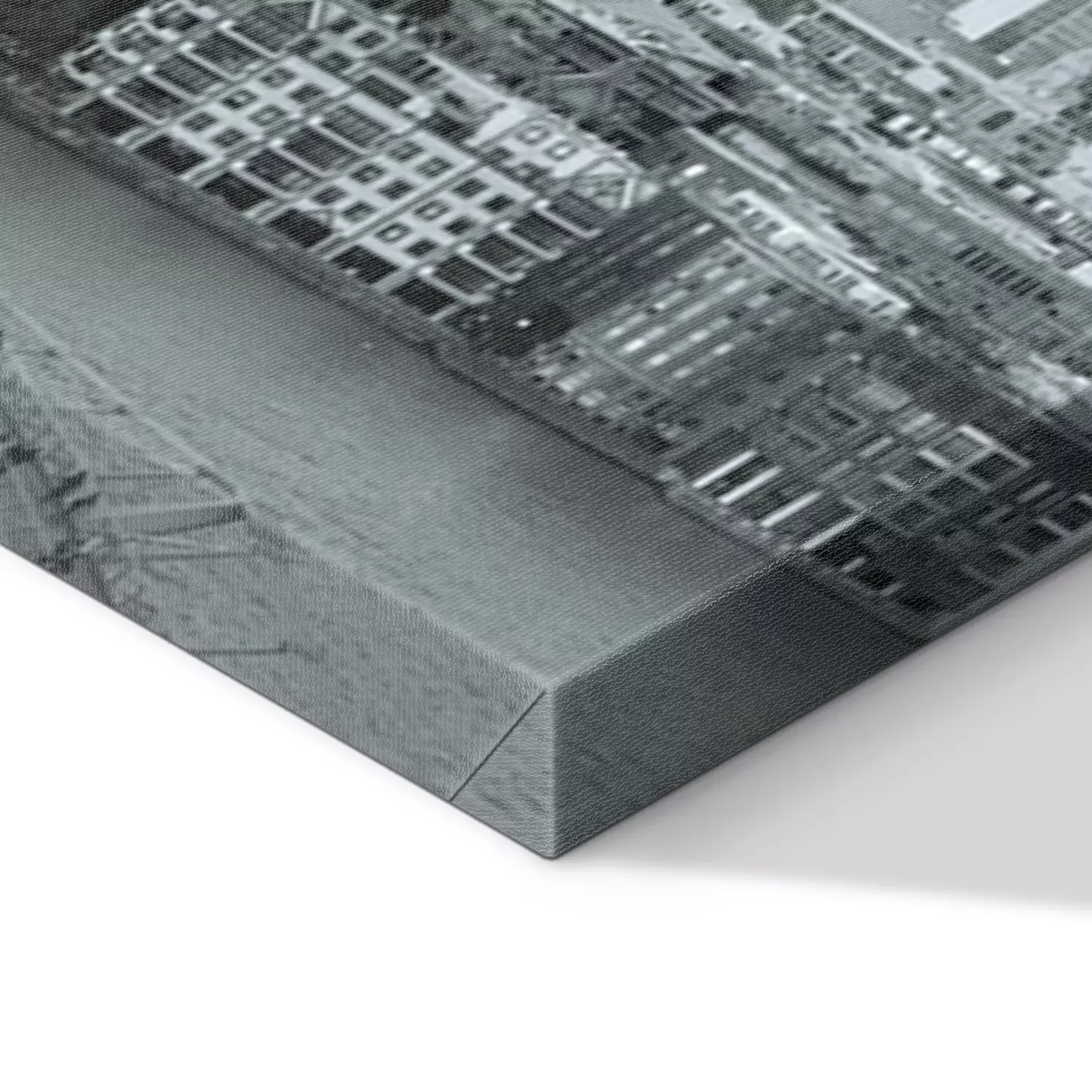 De print wordt aangebracht op hoogwaardig canvas dat op een schildersweefgetouw (spieraam) wordt gespannen. Omdat de print de zijranden bedekt, hoeft het ontwerp niet met een extra kader te worden omlijst. Wij raden ook composities aan die uit meerdere foto's bestaan en zo een coherente compositie vormen.