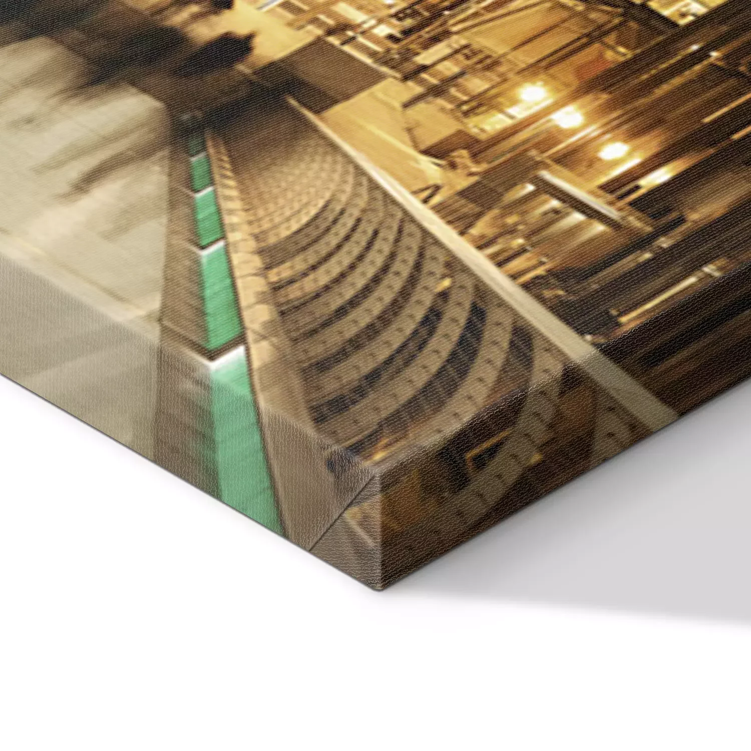 De print wordt aangebracht op hoogwaardig canvas dat op een schildersweefgetouw (spieraam) wordt gespannen. Omdat de print de zijranden bedekt, hoeft het ontwerp niet met een extra kader te worden omlijst. Wij raden ook composities aan die uit meerdere foto's bestaan en zo een coherente compositie vormen.