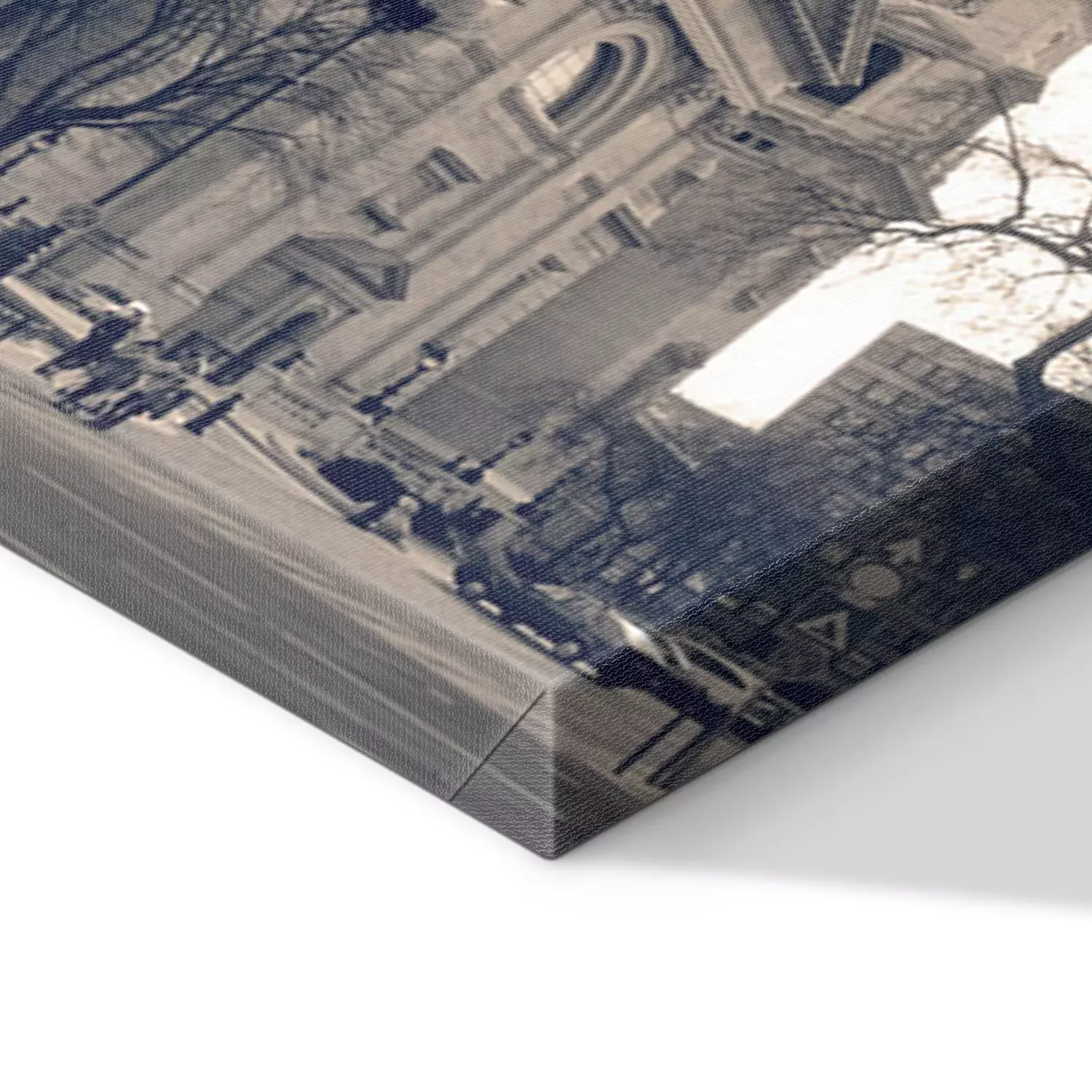 De print wordt aangebracht op hoogwaardig canvas dat op een schildersweefgetouw (spieraam) wordt gespannen. Omdat de print de zijranden bedekt, hoeft het ontwerp niet met een extra kader te worden omlijst. Wij raden ook composities aan die uit meerdere foto's bestaan en zo een coherente compositie vormen.