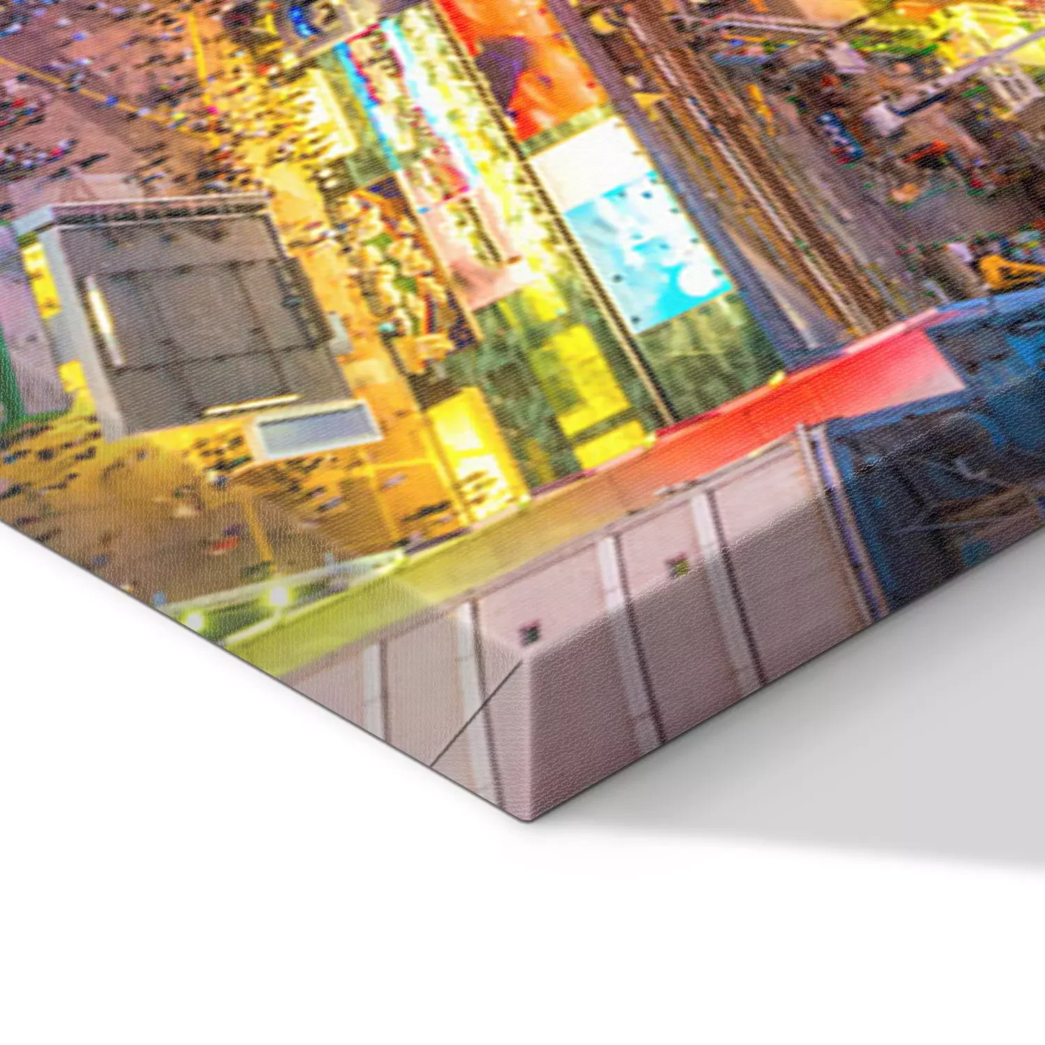 De print wordt aangebracht op hoogwaardig canvas dat op een schildersweefgetouw (spieraam) wordt gespannen. Omdat de print de zijranden bedekt, hoeft het ontwerp niet met een extra kader te worden omlijst. Wij raden ook composities aan die uit meerdere foto's bestaan en zo een coherente compositie vormen.